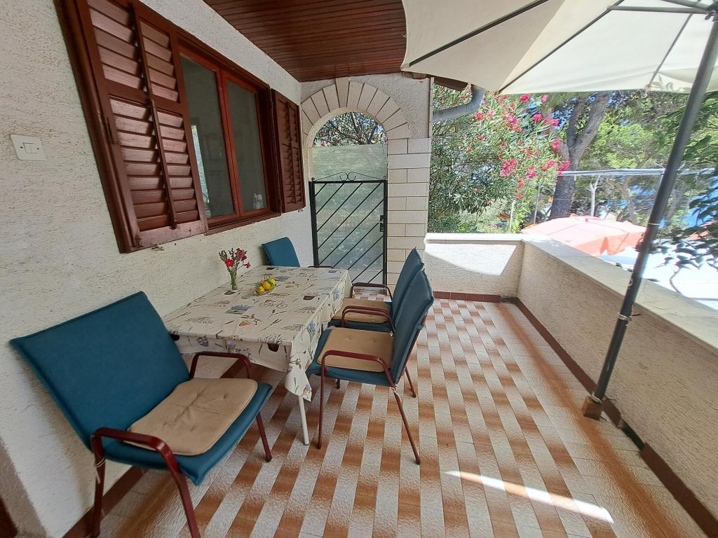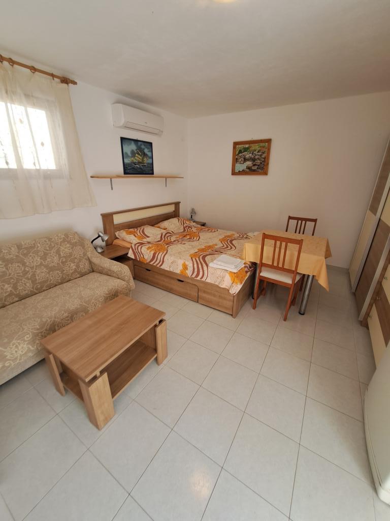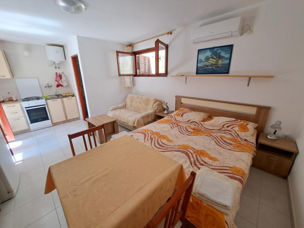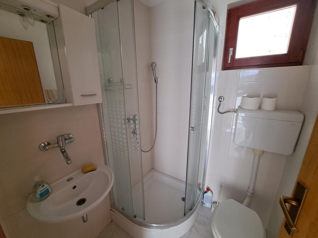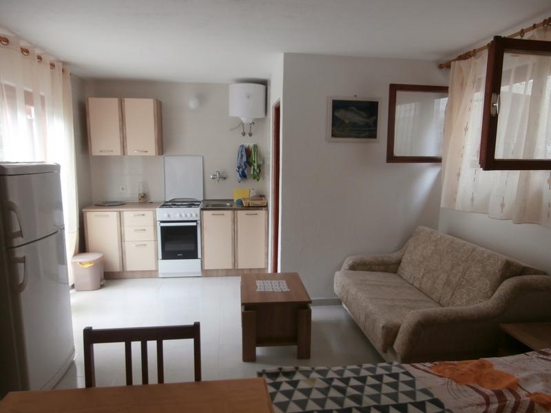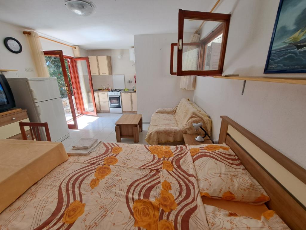 Das Haus besteht aus einer Zweizimmerwohnung A4 (4+0) und einer Studiowohnung A2 (2+1) im Erdgeschoss. Das Haus ist neu in einem Pinienwald in der Nähe eines schönen Kiesstrandes, 60 m vom Strand entfernt. Apartment A4, ID51294 besteht aus zwei Schlafzimmern, 2+2 Betten (Doppelbetten), ggf. einem weiteren Bett. Das Apartment A4 (4+0) befindet sich im Erdgeschoss und verfügt über eine Küche, ein Badezimmer und eine überdachte Terrasse zum Essen und Sitzen sowie eine weitere Terrasse zum Sonnenbaden und für Kinder. Die Größe der Wohnung beträgt ca. 50 m2, Terrassen 15 m2 und 25 m2. Wir bieten Ihnen auch ein neues Studio-Apartment A2 (2+1) ID 51296, Größe 40 m2 mit Terrasse. SAT-TV und Klimaanlage, Internet verfügbar und Garage für ein Auto. Die Wohnung dazwischen vermietet meine Familie im Sommer.