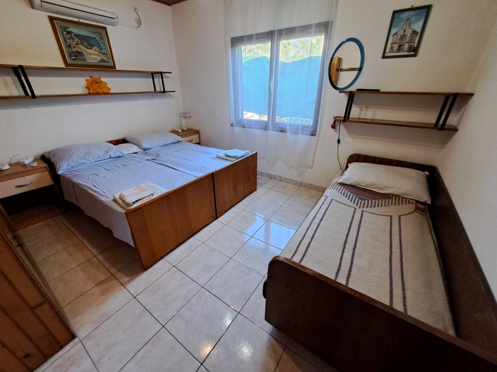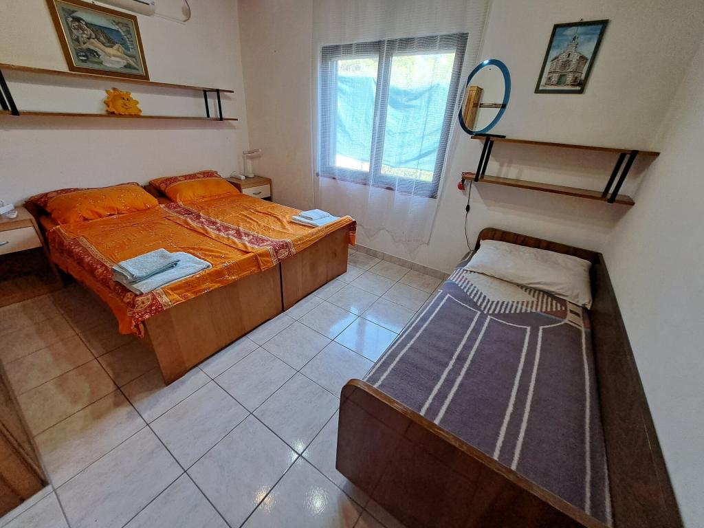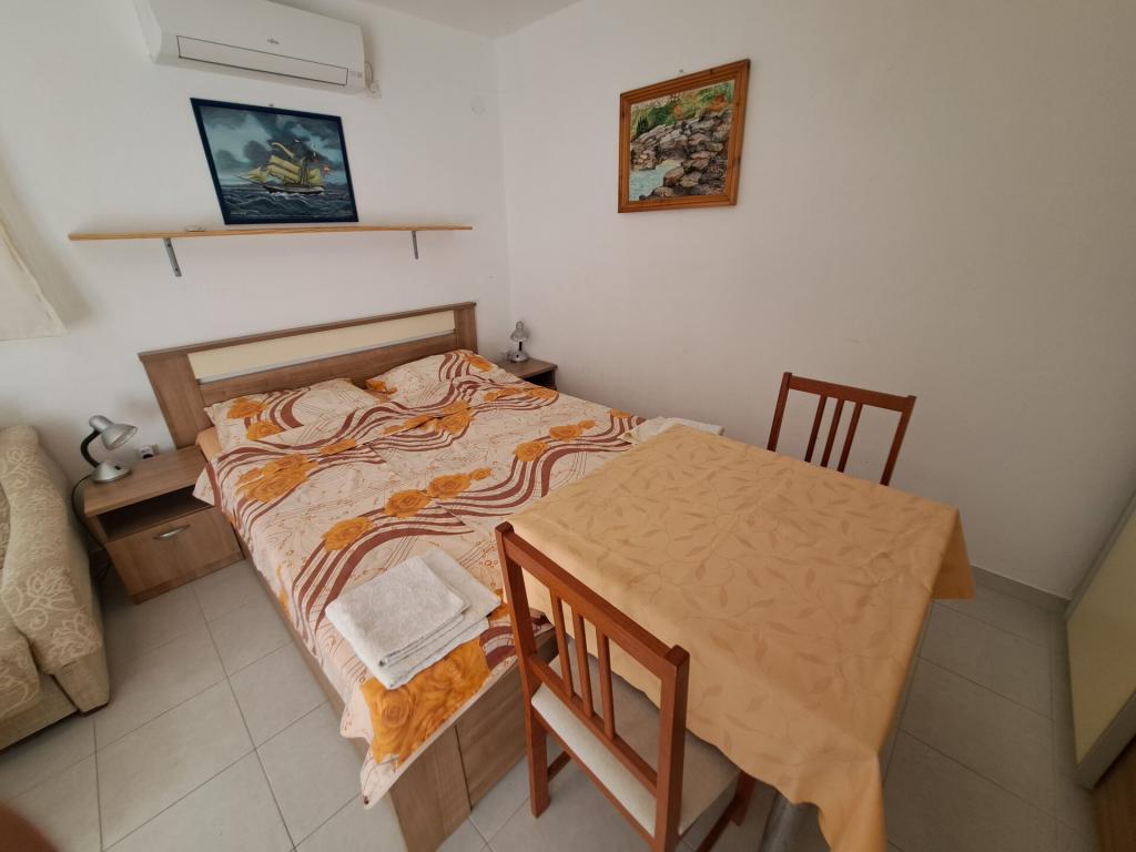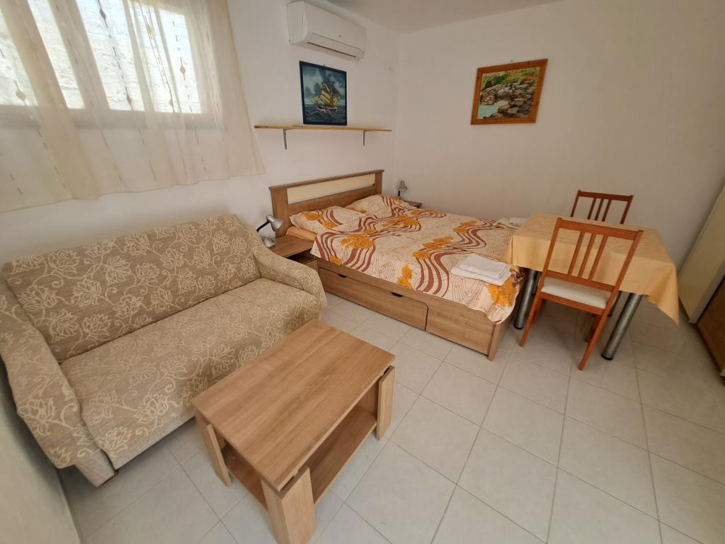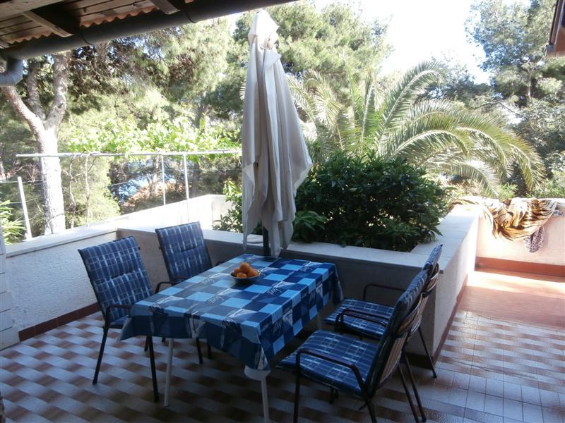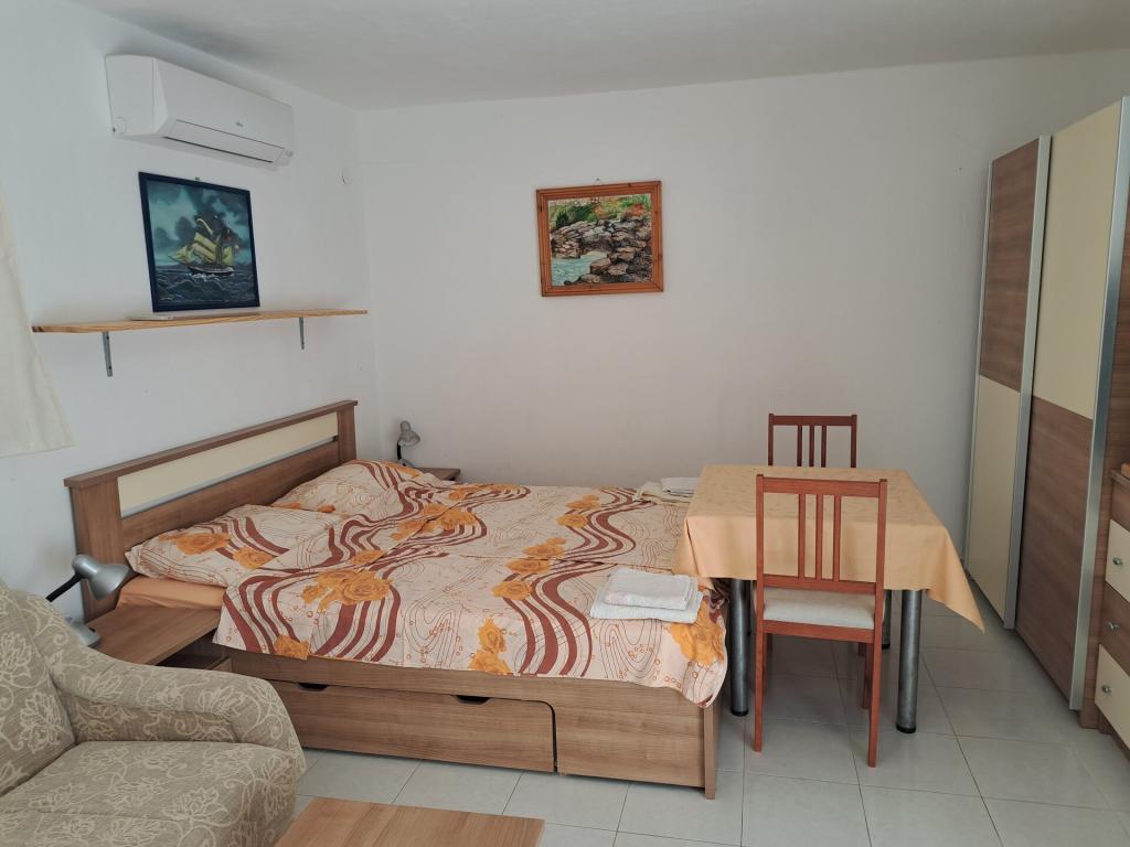 Das Haus besteht aus einer Zweizimmerwohnung A4 (4+0) und einer Studiowohnung A2 (2+1) im Erdgeschoss. Das Haus ist neu in einem Pinienwald in der Nähe eines schönen Kiesstrandes, 60 m vom Strand entfernt. Apartment A4, ID51294 besteht aus zwei Schlafzimmern, 2+2 Betten (Doppelbetten), ggf. einem weiteren Bett. Das Apartment A4 (4+0) befindet sich im Erdgeschoss und verfügt über eine Küche, ein Badezimmer und eine überdachte Terrasse zum Essen und Sitzen sowie eine weitere Terrasse zum Sonnenbaden und für Kinder. Die Größe der Wohnung beträgt ca. 50 m2, Terrassen 15 m2 und 25 m2. Wir bieten Ihnen auch ein neues Studio-Apartment A2 (2+1) ID 51296, Größe 40 m2 mit Terrasse. SAT-TV und Klimaanlage, Internet verfügbar und Garage für ein Auto. Die Wohnung dazwischen vermietet meine Familie im Sommer.