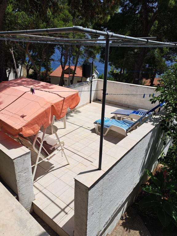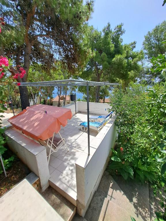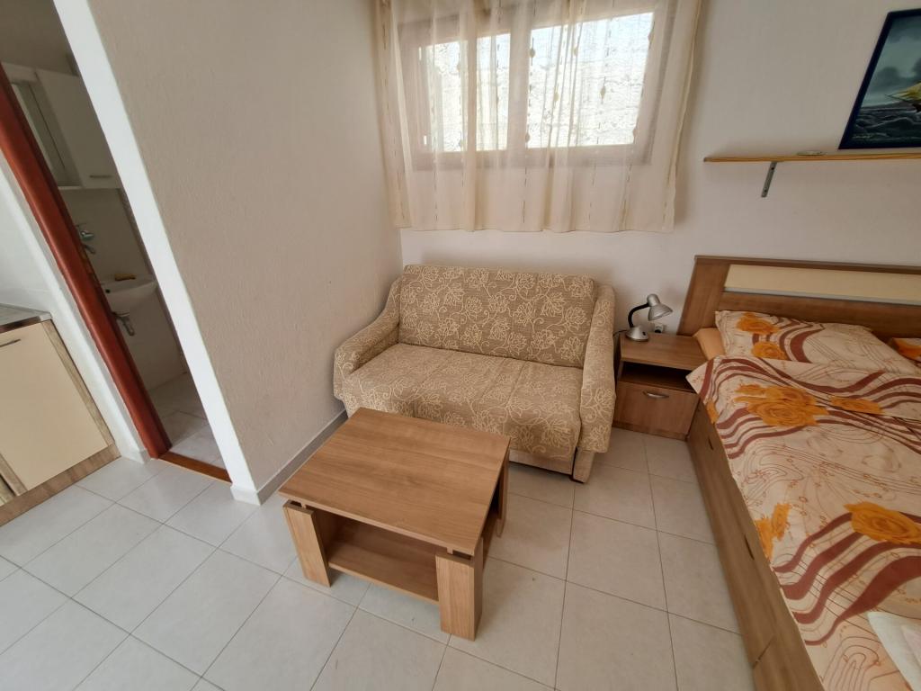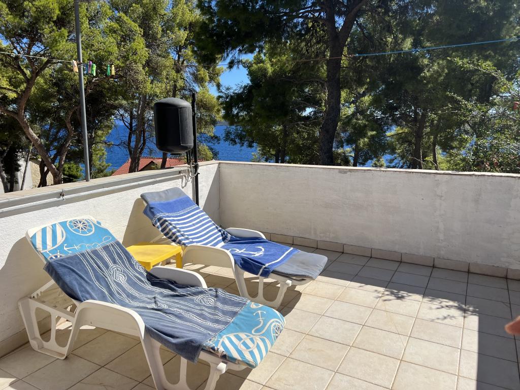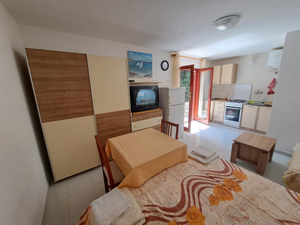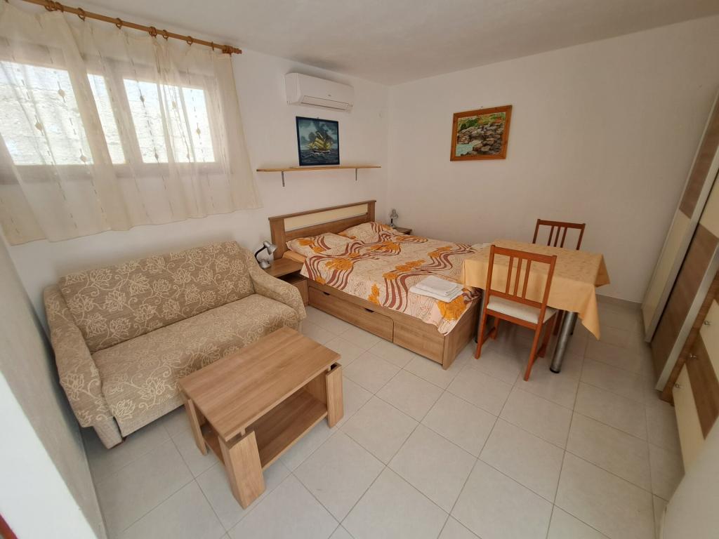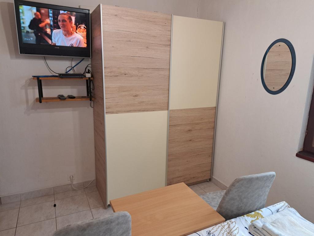Das Haus besteht aus einer Zweizimmerwohnung A4 (4+0) und einer Studiowohnung A2 (2+1) im Erdgeschoss. Das Haus ist neu in einem Pinienwald in der Nähe eines schönen Kiesstrandes, 60 m vom Strand entfernt. Apartment A4, ID51294 besteht aus zwei Schlafzimmern, 2+2 Betten (Doppelbetten), ggf. einem weiteren Bett. Das Apartment A4 (4+0) befindet sich im Erdgeschoss und verfügt über eine Küche, ein Badezimmer und eine überdachte Terrasse zum Essen und Sitzen sowie eine weitere Terrasse zum Sonnenbaden und für Kinder. Die Größe der Wohnung beträgt ca. 50 m2, Terrassen 15 m2 und 25 m2. Wir bieten Ihnen auch ein neues Studio-Apartment A2 (2+1) ID 51296, Größe 40 m2 mit Terrasse. SAT-TV und Klimaanlage, Internet verfügbar und Garage für ein Auto. Die Wohnung dazwischen vermietet meine Familie im Sommer.