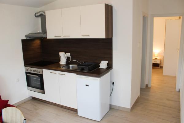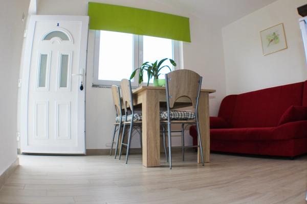 Interieur 1-Zimmer-Wohnung 32 m2, im Erdgeschoss, im Südosten. 1 Zimmer mit 1 franz. Bett (160 cm, Länge 200 cm). Esszimmer mit Sat-TV. TV (Flachbildschirm). Offene Küche (Backofen, 4 Glaskeramikherd). Dusche / WC. Zur Verfügung: Internet (Wireless LAN [WLAN], gratis). Haus / Residenz Mehrfamilienhaus. In einer ruhigen, sonnige Lage, 160 m vom Meer, 160 Meter vom Strand entfernt. Zur Mitbenutzung: Grundstück 500 m2. Gartenmöbel. Im Hause: Internetzugang. Parkplatz auf dem Grundstück. Einkaufsgeschäft, Restaurant 220 m, Steinstrand 160 m.