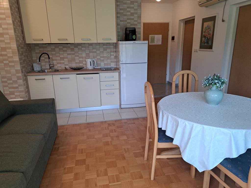 Vollständig und modern ausgestattete Apartments in einer kleinen Stadt, direkt am Meer gelegen. Wir sind das letzte Haus am Meer im kleinen Dorf Banj auf der Insel Pašman. Wir liegen etwa 200 m vom Stadtzentrum (Geschäfte, Cafés, Restaurants und dem örtlichen Strand) entfernt am Meer entlang. Liegt auf einem großzügigen Grundstück (ca. 1600 m2). Sicheres Parken. Vor dem Haus befindet sich eine angelegte Rasenfläche mit einem Pavillon. Zur Ausstattung der Gartenlaube gehören ein Grill, 2 Elektrokochplatten, ein Kühlschrank, eine Spüle, Koch- und Essgeschirr, ein Tisch und Bänke zum Sitzen. Die Nutzung des Pavillons steht den Gästen nach Absprache mit dem Gastgeber kostenlos zur Verfügung. Alles ist zum Meer ausgerichtet. An das Grundstück ist ein gepflegter Strand (Schatten, Liegestühle, Bänke, Dusche) angeschlossen. Besonders geeignet für Familien mit kleinen Kindern und für alle, die Ruhe und Entspannung suchen.