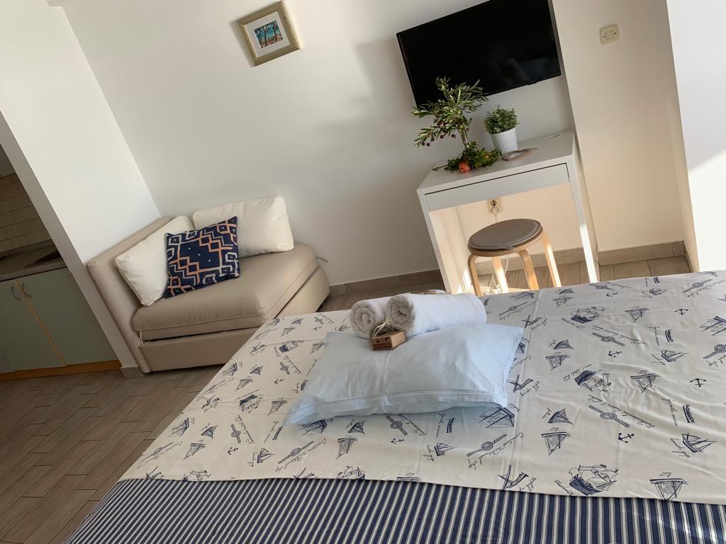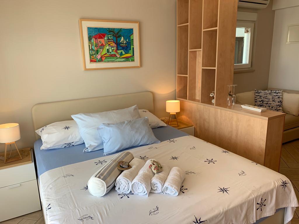 Wir bieten moderne Studio-Apartments, die direkt am Meer liegen, jeweils auf einer eigenen Etage. Alle Wohnungen verfügen über einen Balkon mit schönem Blick auf das Meer und die umliegenden Inseln.