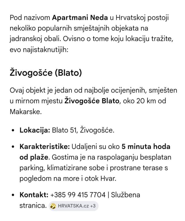 Wer will den besten Urlaub so einzigartig in živogoště Blato für Neda und Luba und Chris die beste Unterkunft zu günstigen Preisen genießen. Wir gehen dort als Familie seit 15 Jahren und als wir versuchen, Ägypten, Spanien, Bulgarien, und nur in Živogoště nach oben, ich jedem empfehlen. Vielen Dank für alles. KUBA Dvornik