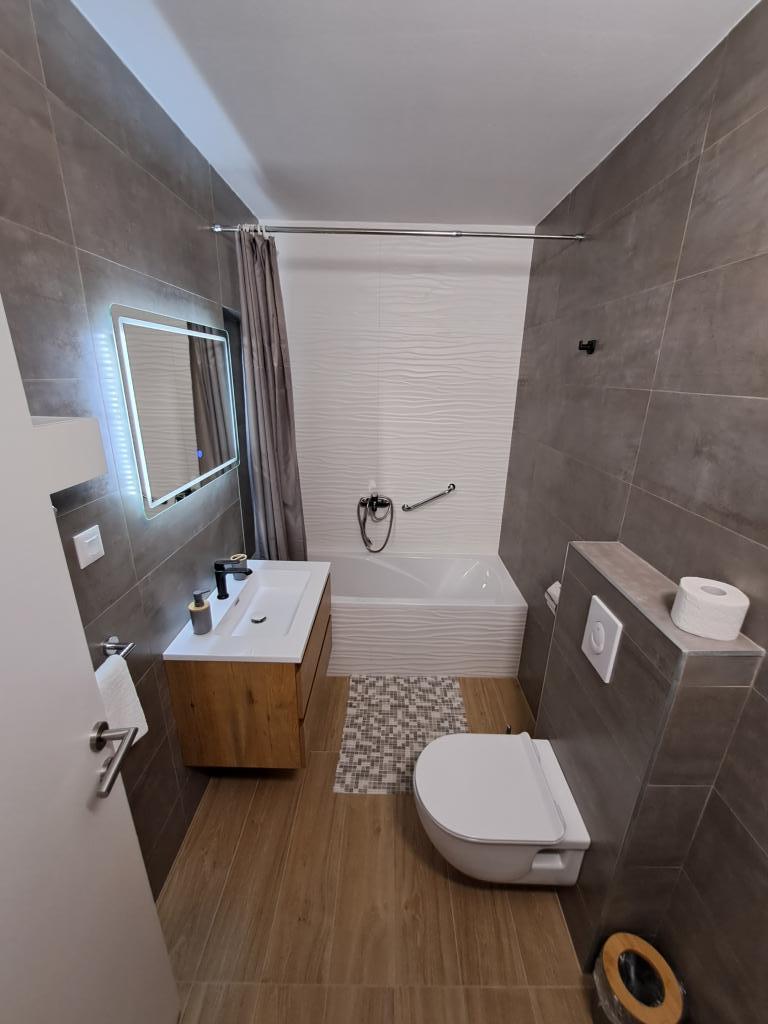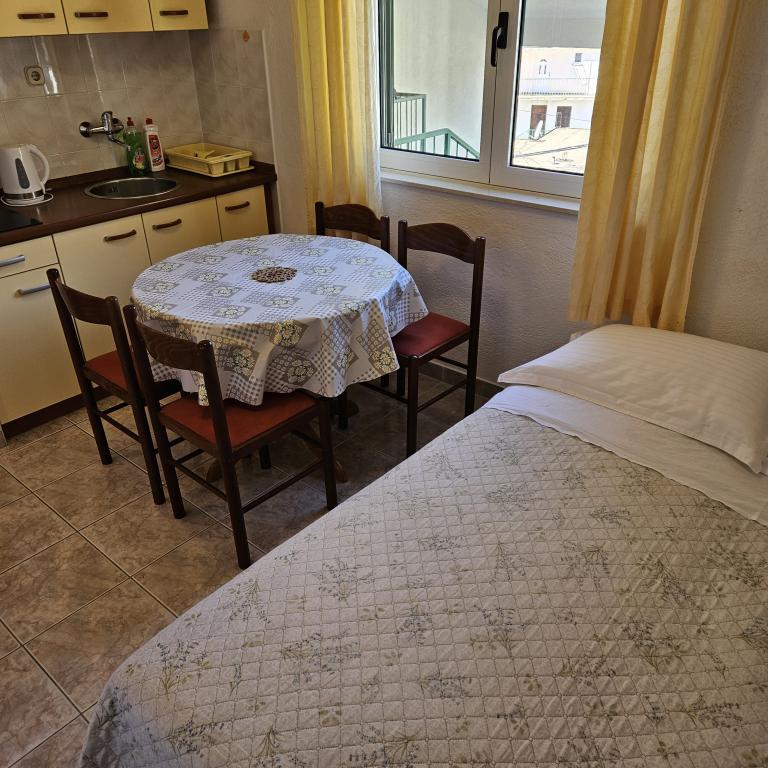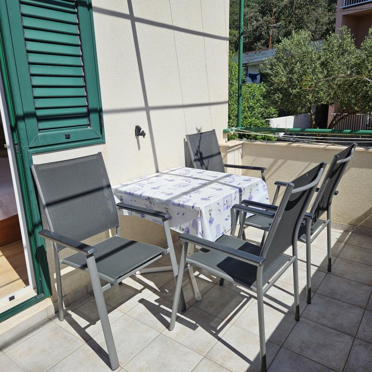 Apartments im Stadtzentrum, klimatisiert, mit WLAN (Wi-Fi). 25 Meter vom Meer entfernt. Es besteht die Möglichkeit, nach vorheriger Ankündigung beim Gastgeber einen Grillabend zu organisieren. Gesicherter Parkplatz.