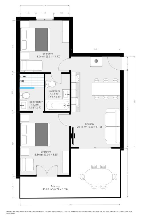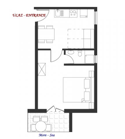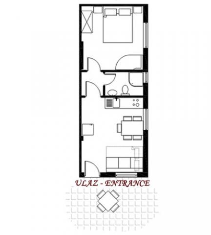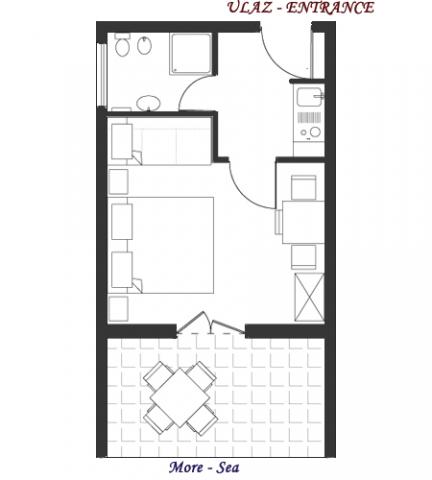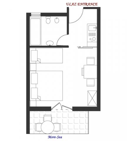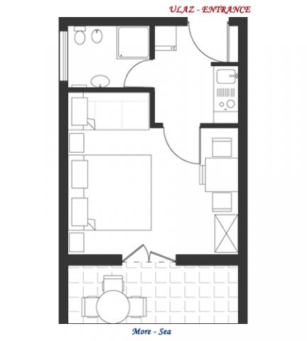 Studio-Apartment für zwei Personen mit Zusatzbett (26 m2)