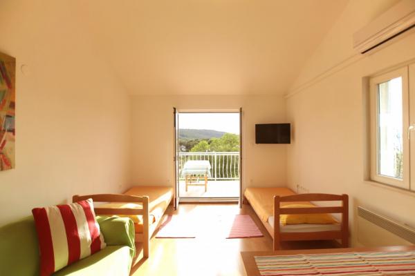 Freundliche Gastgeber und komfortable Apartments in einem schönen Ort mit atemberaubender Aussicht. Ich empfehle, dass Sie ein Boot und segeln um die Insel mit dem Anschlag / Schwimmen in der Bucht Magarna mieten. Alle, die weg von der Hektik der Stadt wollen, genießen Sie die schöne Insel, wo keine Autos.