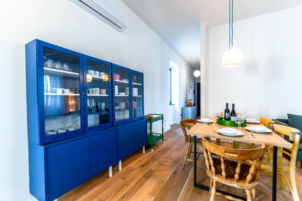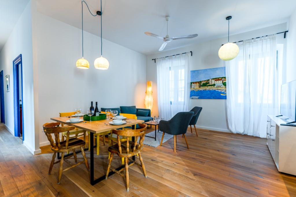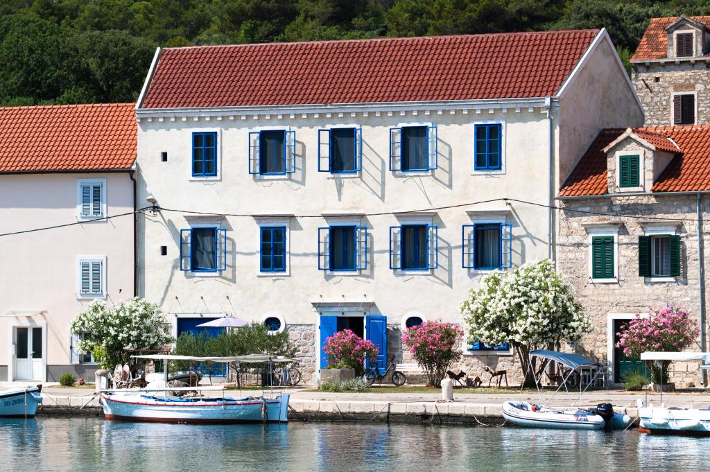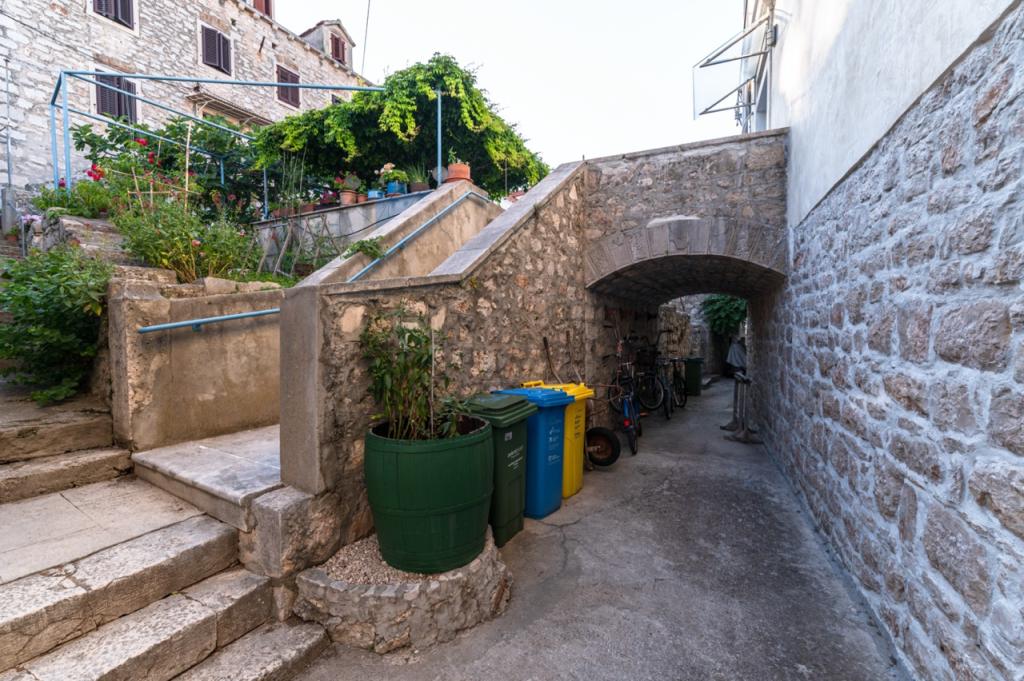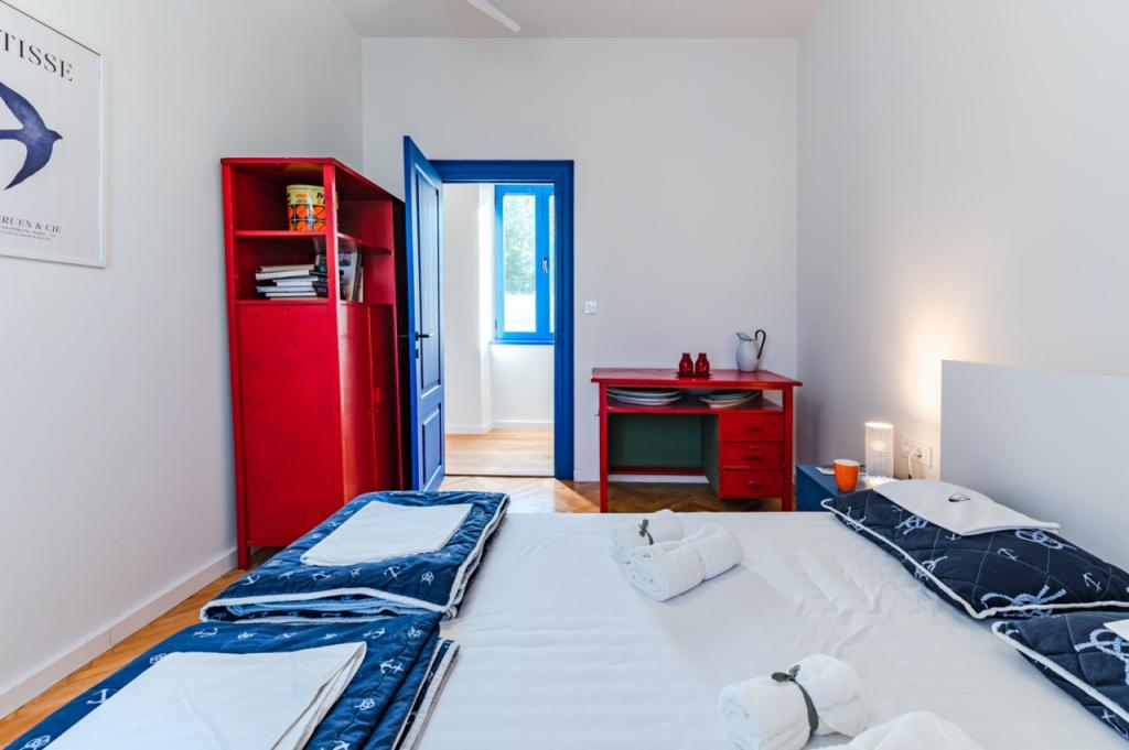 Ein Apartment im Herzen von Zlarin, wo Sie alle Annehmlichkeiten der Insel direkt vor der Haustür haben. Es befindet sich im ersten Stock eines hundert Jahre alten Schulgebäudes. Das Gebäude wurde umfassend renoviert und bietet Gästen einen komfortablen Aufenthalt. Bei der Renovierung wurden einige der Retro-Möbel erhalten, die das ursprüngliche mediterrane Flair unterstreichen. Das Apartment verfügt über zwei Doppelzimmer, ein geräumiges Wohn- und Esszimmer, eine voll ausgestattete Küche mit Bar und ein Badezimmer. Auf der Rückseite des Gebäudes befindet sich eine Terrasse mit schattigem Bereich – ideal zum Entspannen am Nachmittag. Willkommen in der alten Schule!