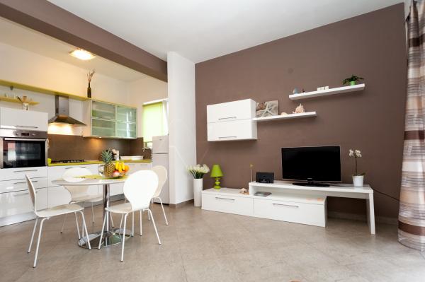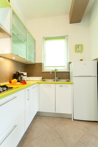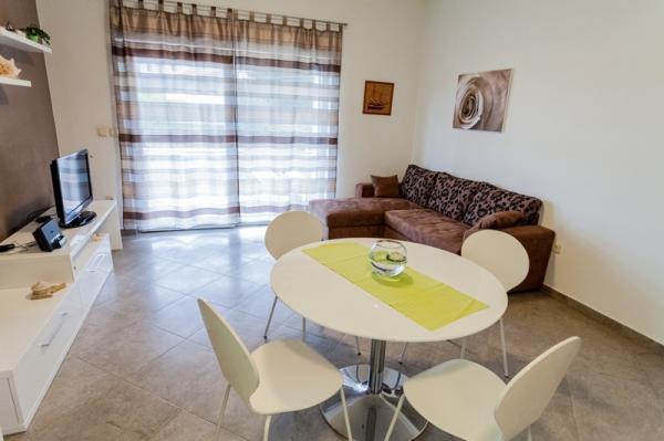 Die Apartments sind sauber und luxuriös ausgestattet. Angenehme und hilfsbereite Besitzer. Zum Strand 5 Minuten, geeignet für kleine Kinder, allmählicher Eintritt ins Wasser, Kies. Wir empfehlen auf jeden Fall.