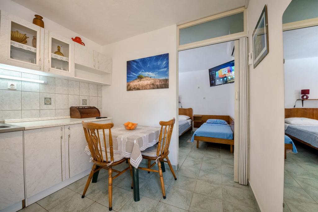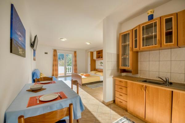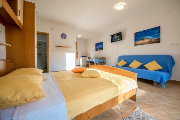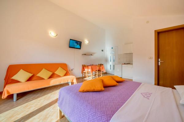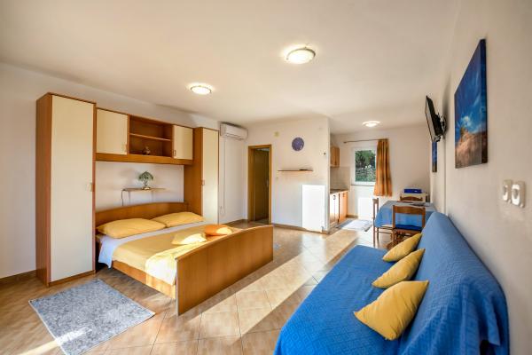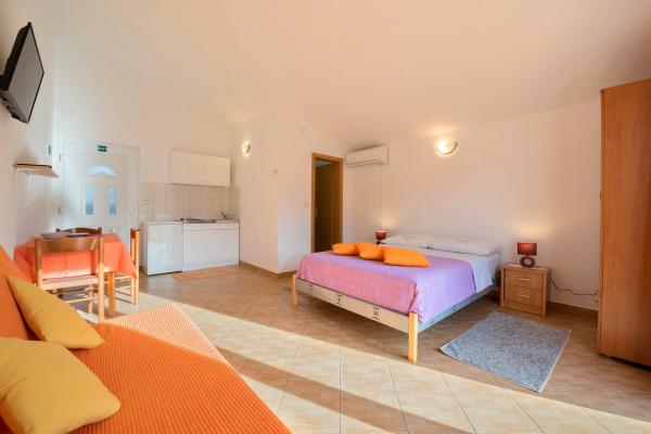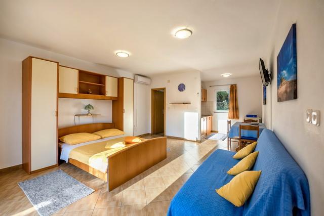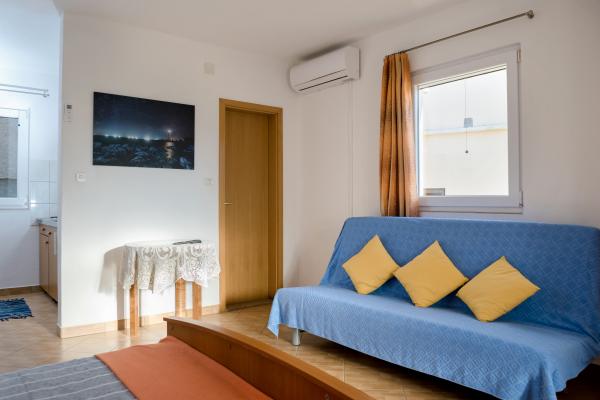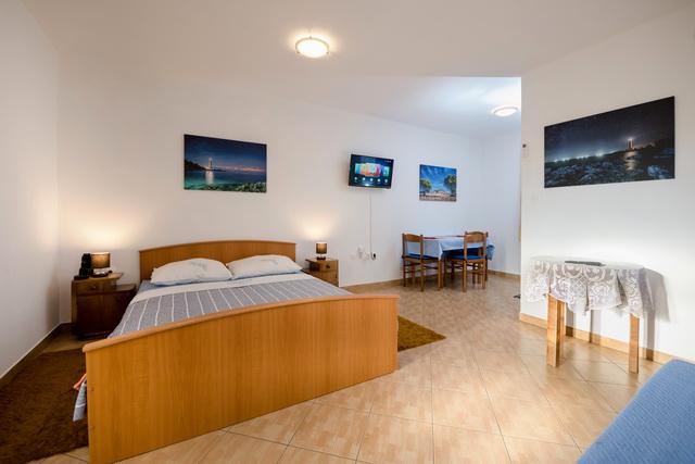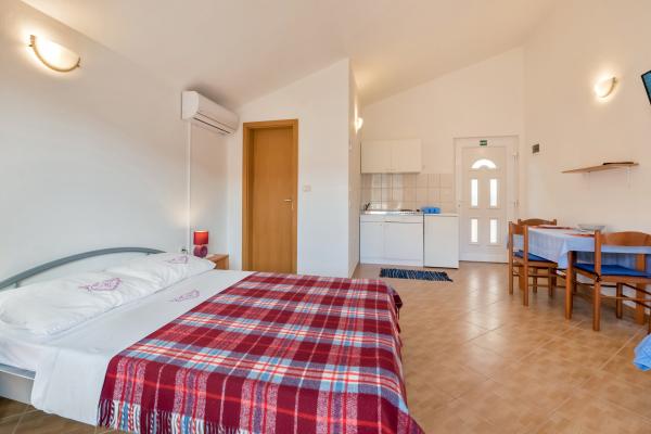Apartments Slavica in Luka auf Dugi otok sind neue, modern eingerichtete und geräumige Studio-Apartments (30-35m2 plus Balkon). Sie sind geeignet für 2-3 Personen oder für 2 Personen mit 1-2 Kindern. Jede Wohnung verfügt über ein Doppelbett und ein Zustellbett - ein Schlafsofa 135x200cm. . Nur 100 m vom Zentrum, Geschäften, Cafés, 150 m zum nächsten Strand. Ruhe, Stille, kristallklares Meer, Strände in unberührter Natur. KLIMAANLAGE: Klimaanlage in jeder Wohnung. INTERNET: Kostenloses WLAN. Die Autozufahrt zum Haus ist gesichert, der Parkplatz ist ca. 150m entfernt, kostenlose, öffentliche Parkplätze an der Küste, im Hafen. Hunde sind nicht erlaubt.