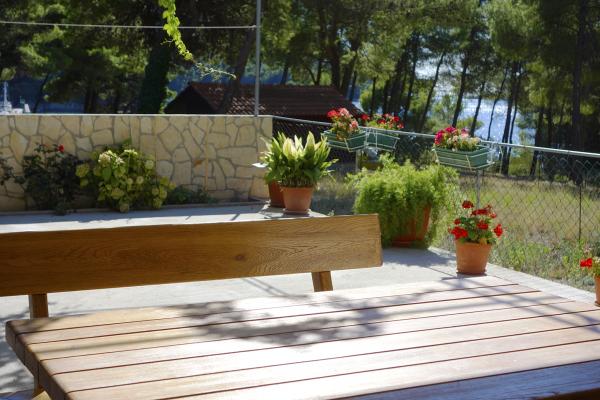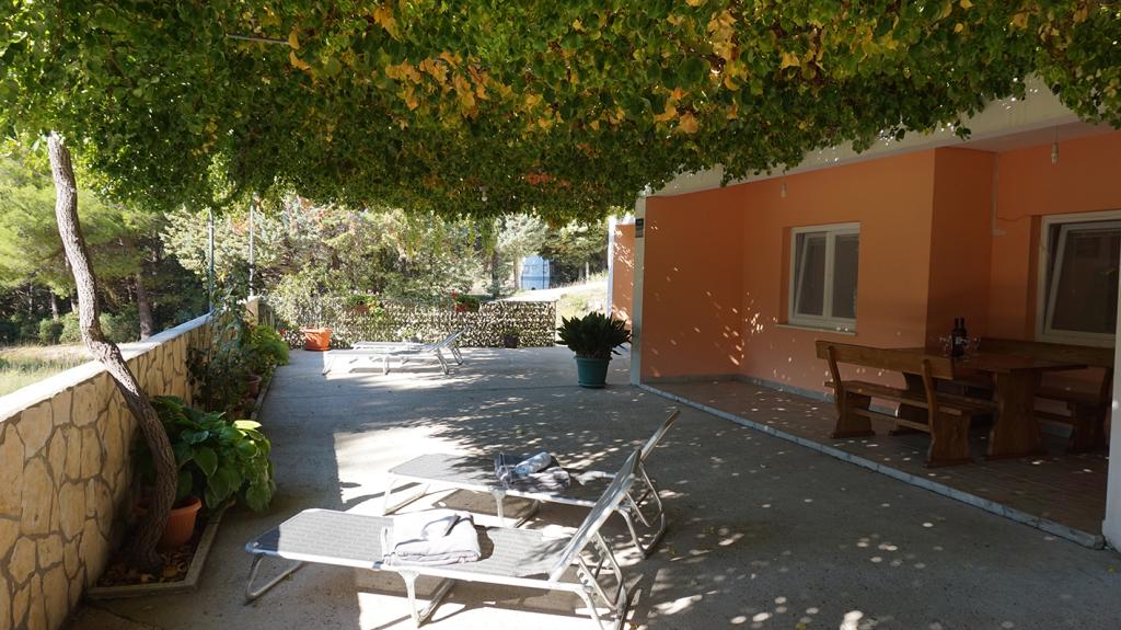 Die Apartments liegen 50 m vom Hauptstrand entfernt, unterhalb des Hauses befinden sich mehrere kleine Strände. Das Stadtzentrum mit Geschäft, Post und Geldautomat ist in 5 Minuten zu Fuß erreichbar. Das Anwesen ist von Pinien umgeben und verfügt über eine große, schattenspendende Terrasse mit Weinreben. Ein privater Grill und eine Außendusche sind ebenfalls vorhanden. Das Anwesen kann komplett oder in einzelnen Einheiten gemietet werden.