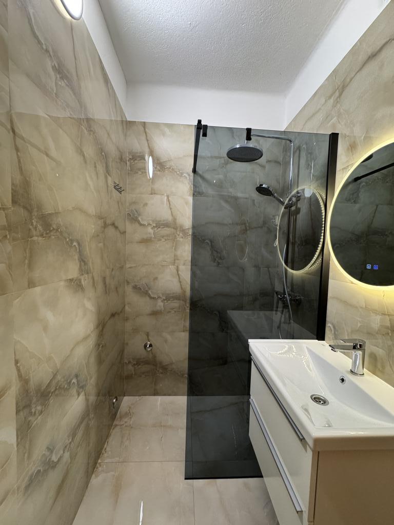 Ich kann die Tina Apartments wärmstens empfehlen, da sie uns einen Urlaub beschert haben, den wir noch nie zuvor erlebt haben. Das Haus liegt im wahrsten Sinne des Wortes direkt am Strand, wir waren im Erdgeschoss untergebracht und es erwies sich als ideal für uns mit zwei Kindern, da man sich keine Gedanken über das Packen von Sachen und den Strandbesuch machen muss und die Kinder schwimmen gehen können wann immer sie wollen und wir schauen ihnen von der Terrasse aus zu, während wir das Mittagessen kochen oder Kaffee trinken. Die Wohnung ist groß, geräumig und mit allem nötigen Zubehör ausgestattet, und ich gebe ein großes Plus an die Tatsache, dass sie auch über eine Spülmaschine verfügt. Es gibt mehrere weitere schöne Strände in der Nähe, die nur wenige Gehminuten entfernt sind. Der Ort ist ruhig und verfügt über alle notwendigen Einrichtungen für einen perfekten Urlaub.