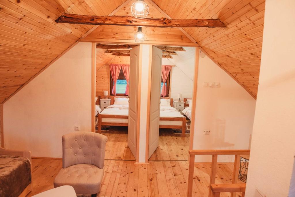 Kurtaxe ist im Preis inbegriffen.Kommen Sie zur Ruhe in der Natur und in der Stille, probieren Sie Lika-Schnaps, Skripavac-Käse und alles, was Lika zu bieten hat. Sie können den nur 7 km entfernten Kruščica-See, das Nikola Tesla Memorial Center 13 km, den Grabovača-Höhlenpark 9 km, Štirovača 33 km, Karlobag 50 km und den Nationalpark Plitvicer Seen 73 km besuchen.