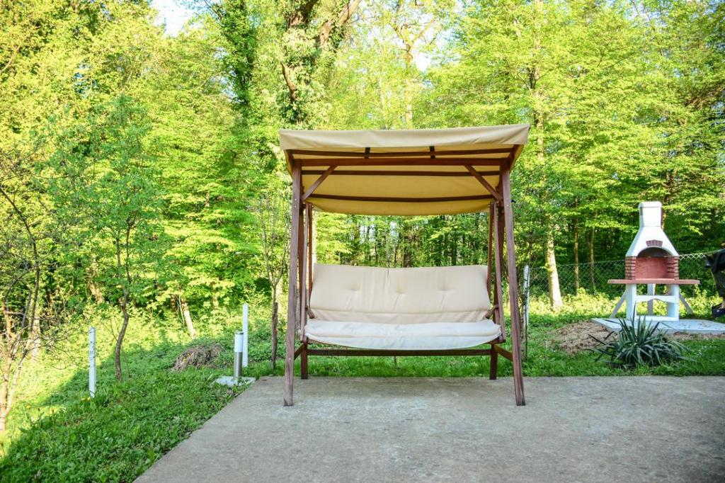 Das Ferienhaus Lema liegt in der grünen Oase Hrvatski Zagorje in der Stadt Tuhelj, 1,5 km von der Therme Tuhelj entfernt. Das 2000 m² große Grundstück ist eingezäunt und eignet sich zum unbeschwerten Spielen von Kindern und Haustieren. Es bietet einen idealen Ort für Ruhe und angenehmes geselliges Beisammensein. Die nahe gelegenen Hügel, auf denen sich zahlreiche Weinberge und Obstgärten mit einheimischen Arten erstrecken, sind ein idealer Ort, um dem Trubel der Stadt zu entfliehen. Fans eines aktiven Urlaubs haben die Möglichkeit, die Radwege in der Nähe des Hauses und das Schwimmbad in der Therme Tuhelj zu nutzen. Das Haus ist 80 m² groß und verfügt über eine Terrasse. Im Erdgeschoss befinden sich eine Küche, ein Esszimmer und ein Wohnzimmer sowie ein Badezimmer mit Toilette. Im ersten Stock befinden sich zwei Schlafzimmer mit separater Toilette und ein Balkon. Die Unterkunftskapazität des Gebäudes beträgt ein Zimmer mit zwei Betten, ein Zimmer mit einem Bett und ein Wohnzimmer mit zwei Zustellbetten. Es gibt zwei Parkplätze, Grill, Backofen, Kamin, Safe, Schaukel, Sandkasten und Rutsche für Kinder, sowie WLAN und TV. Neu im Angebot ist eine Hydromassagewanne.