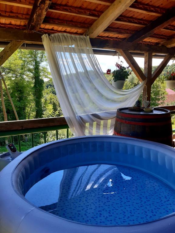 Das Ferienhaus Pčelica befindet sich in Sekirišće, Sveti Križ Začretje, in unmittelbarer Nähe des Roses Outlet Centers. Es liegt außerhalb eines besiedelten Ortes und ist von Natur und einer wunderschönen Aussicht auf die umliegenden Hügel und Sljeme in der Ferne umgeben. Das Haus ist komplett möbliert. Offenes Schlafzimmer im Dachgeschoss. Küche, Wohnzimmer und Toilette mit Bad im Erdgeschoss. Eine Terrasse mit Tisch und eine Erweiterung der Terrasse mit Whirlpool, die zu Beginn des 5. Monats angeboten wird. Terrasse im Erdgeschoss mit Tischen, Grill, Backofen, Wasserkocher und Kühlschrank. Für Kinder gibt es eine Rutsche, Schaukeln, ein Karussell und einen Sandkasten. Der Preis richtet sich nach der Anzahl der Personen.
