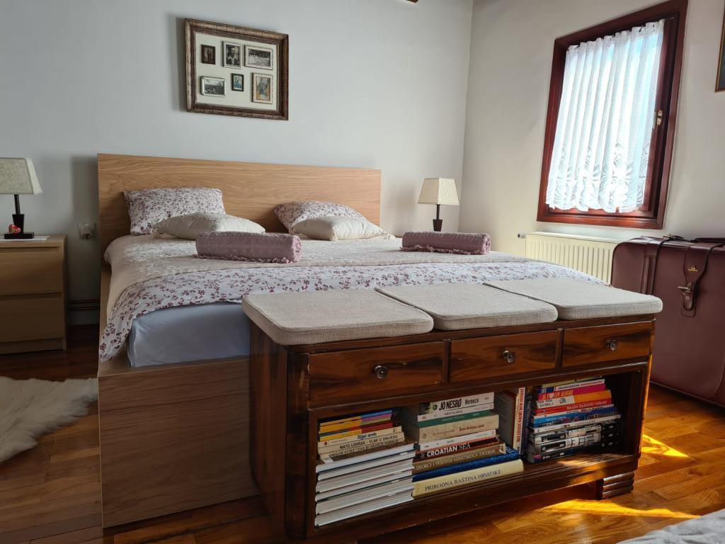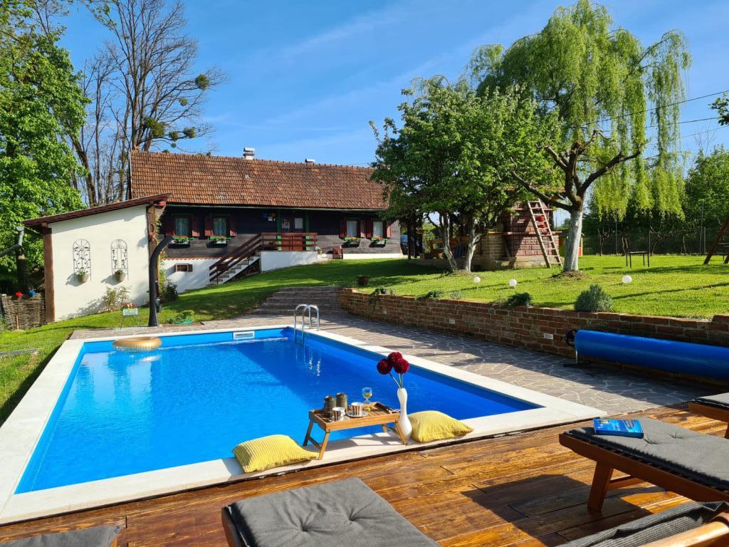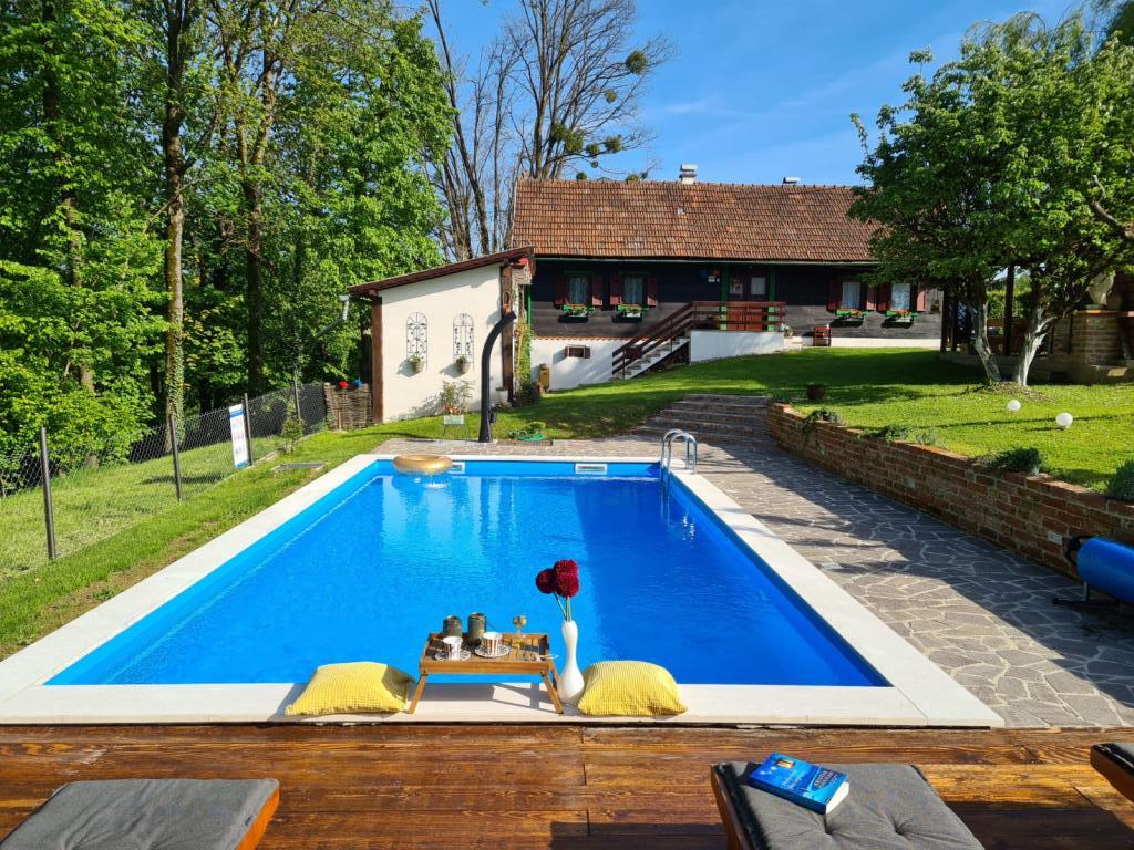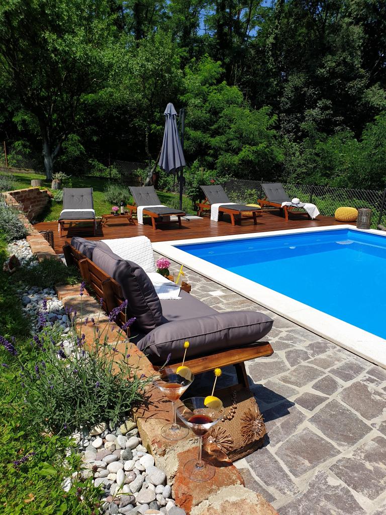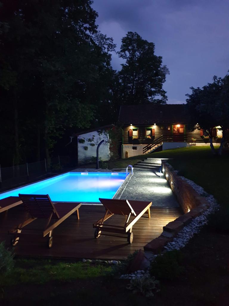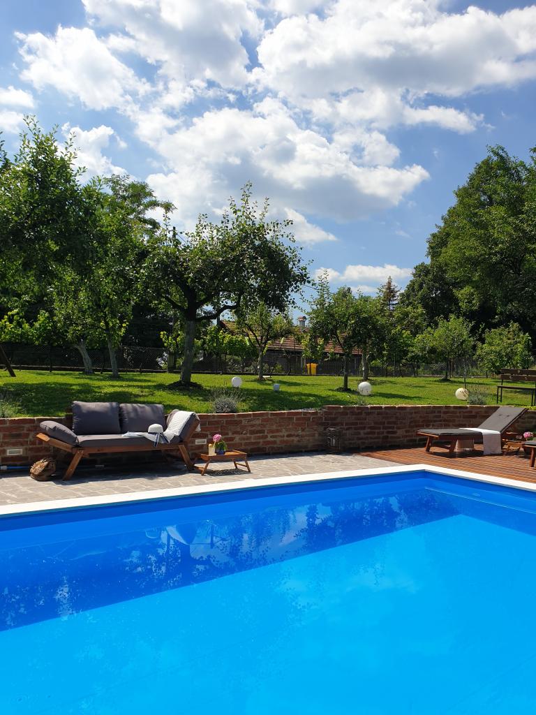 Hižica Krijesnica liegt auf einem ruhigen, zahmen Hügel in der Nähe von Zagreb, in Kupljenovo. Es ist ideal für einen Familienurlaub und ist für 5 Personen ausgestattet, bei Bedarf mit einem Kinderbett. Es wird für mindestens zwei Nächte gemietet und ist das ganze Jahr über verfügbar. Es besteht aus einer Küche, einem Wohnzimmer, einem Badezimmer und einem Schlafzimmer, dessen Gesamtgröße 70 m2 beträgt, und im Untergeschoss befindet sich ein Ruheraum mit Whirlpool, dessen Größe 21 m2 beträgt. Bettwäsche, Handtücher für die Körperpflege, Handtücher für den Pool sowie Bademäntel sind im regulären Angebot ohne Aufpreis. Im eingezäunten Hof befindet sich ein beheiztes Schwimmbad 8x4, beheizt vom 01.05.-15.10., mit großzügiger Liegewiese, Liegestühlen und Solardusche im Freien. In der überdachten Holzlaube gibt es einen Ofen und Grillgeräte, eine Spüle sowie einen Holztisch und Bänke. Für die Kleinsten stehen Klettergerüste, Schaukeln, ein Gartenhaus und verschiedene Gesellschaftsspiele zur Verfügung.