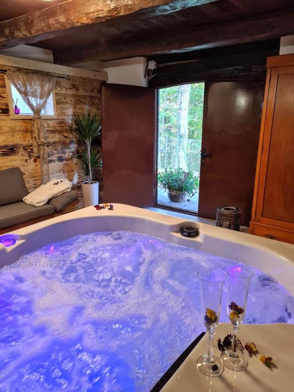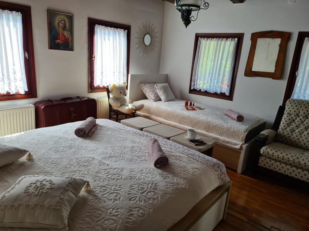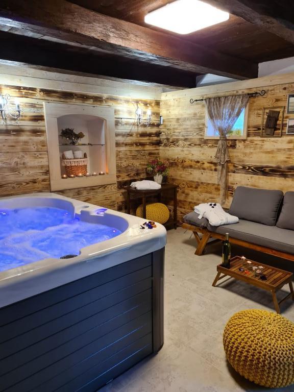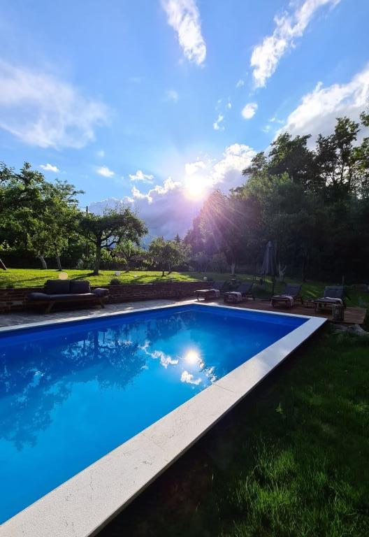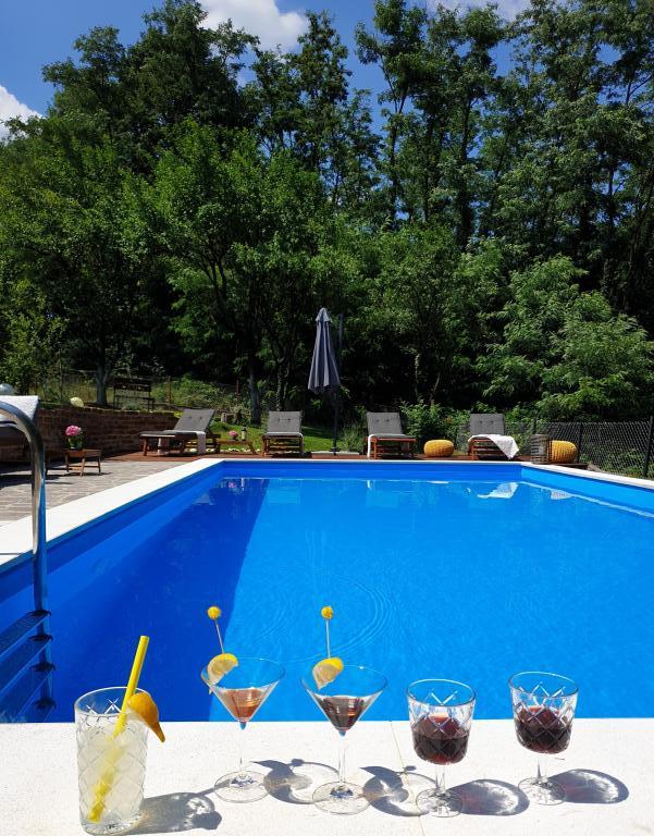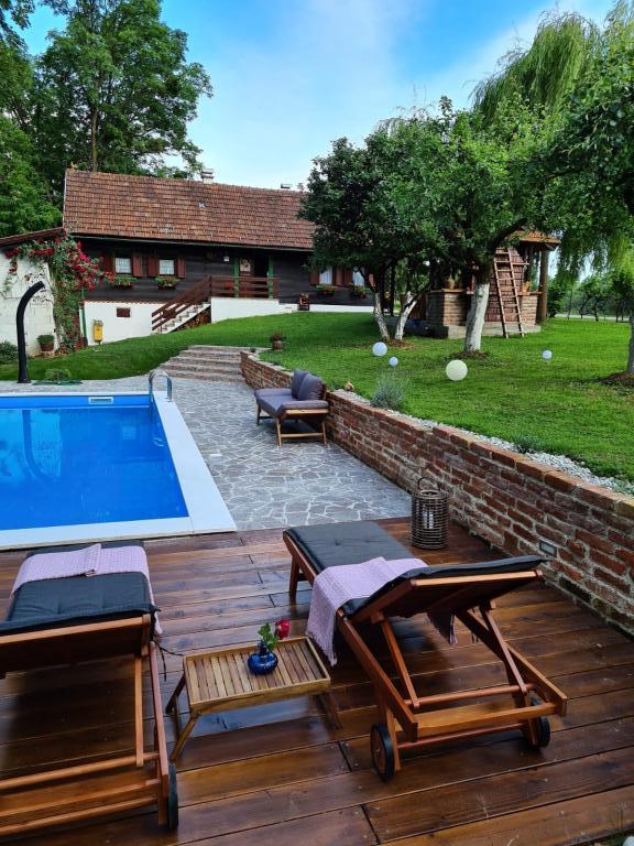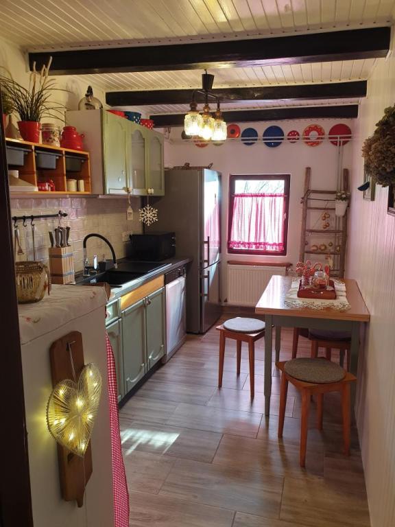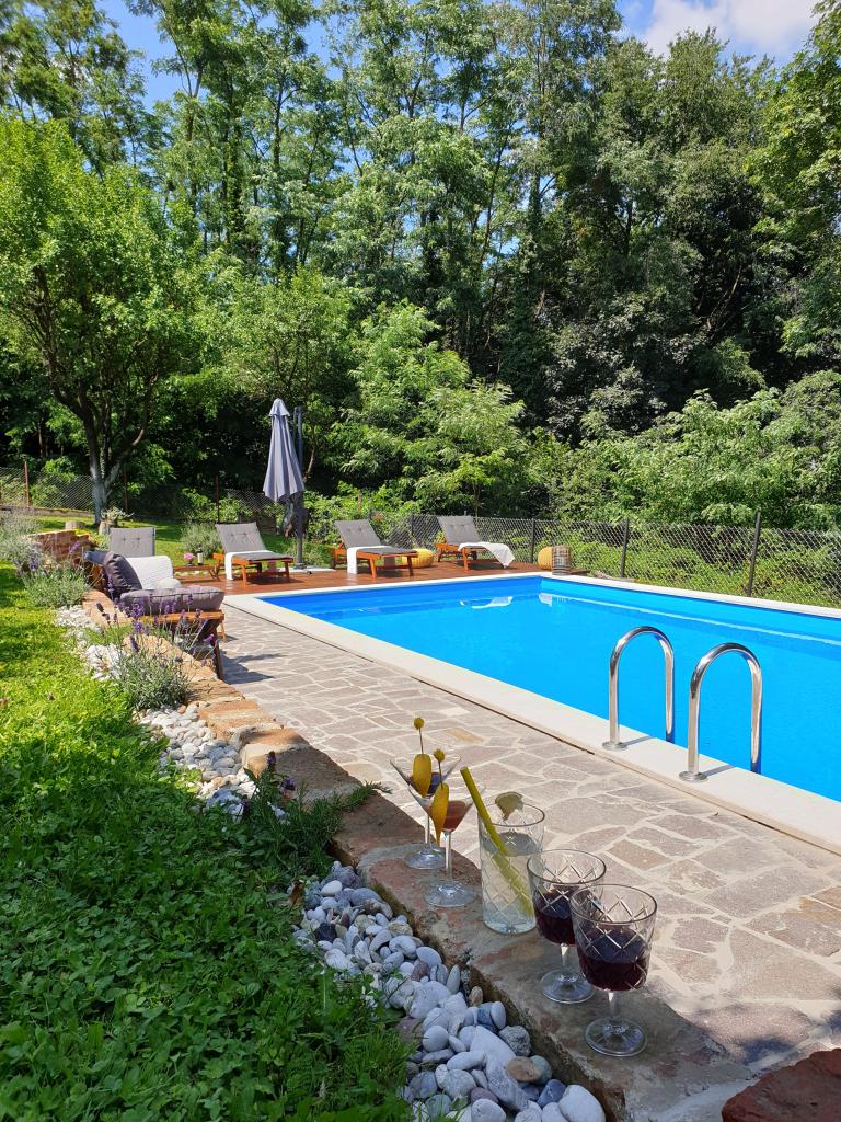 Hižica Krijesnica liegt auf einem ruhigen, zahmen Hügel in der Nähe von Zagreb, in Kupljenovo. Es ist ideal für einen Familienurlaub und ist für 5 Personen ausgestattet, bei Bedarf mit einem Kinderbett. Es wird für mindestens zwei Nächte gemietet und ist das ganze Jahr über verfügbar. Es besteht aus einer Küche, einem Wohnzimmer, einem Badezimmer und einem Schlafzimmer, dessen Gesamtgröße 70 m2 beträgt, und im Untergeschoss befindet sich ein Ruheraum mit Whirlpool, dessen Größe 21 m2 beträgt. Bettwäsche, Handtücher für die Körperpflege, Handtücher für den Pool sowie Bademäntel sind im regulären Angebot ohne Aufpreis. Im eingezäunten Hof befindet sich ein beheiztes Schwimmbad 8x4, beheizt vom 01.05.-15.10., mit großzügiger Liegewiese, Liegestühlen und Solardusche im Freien. In der überdachten Holzlaube gibt es einen Ofen und Grillgeräte, eine Spüle sowie einen Holztisch und Bänke. Für die Kleinsten stehen Klettergerüste, Schaukeln, ein Gartenhaus und verschiedene Gesellschaftsspiele zur Verfügung.