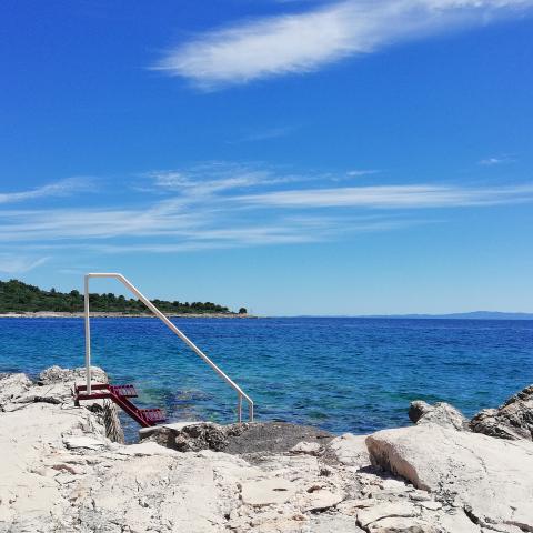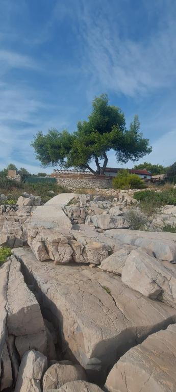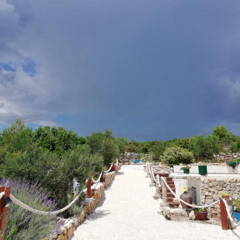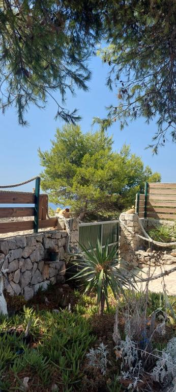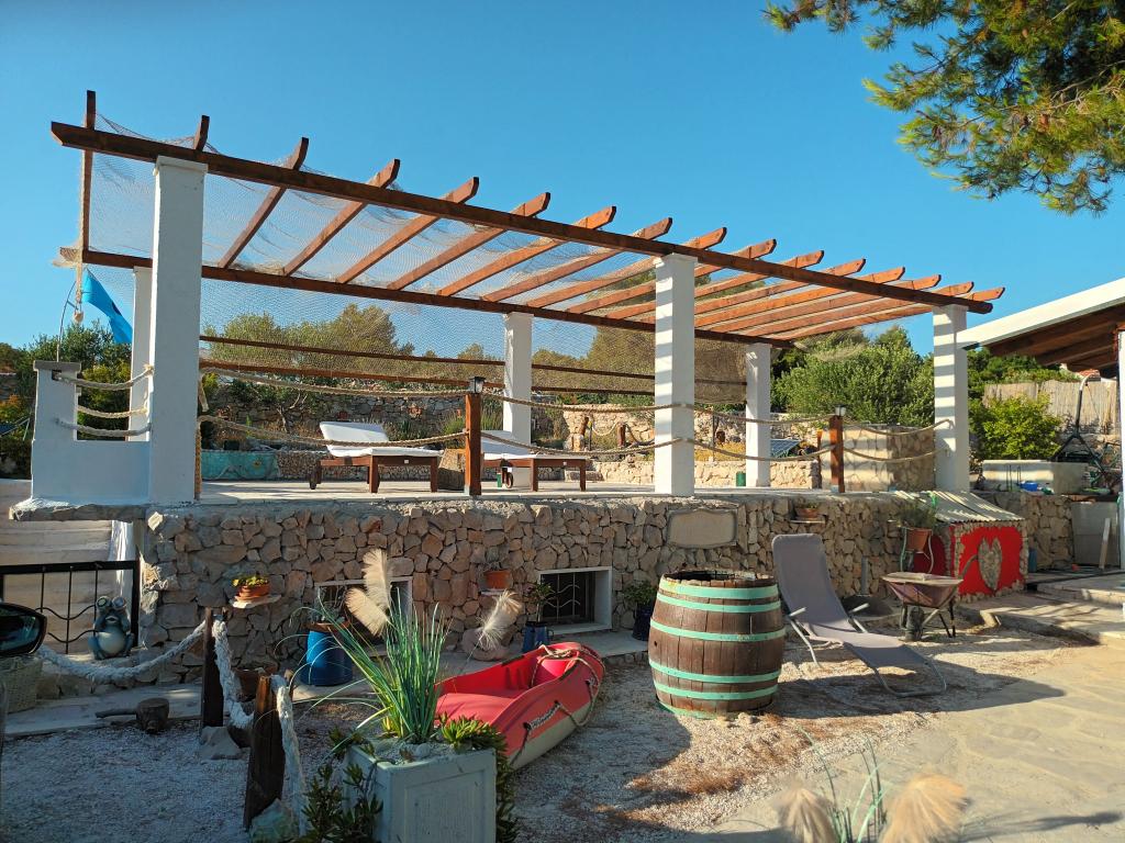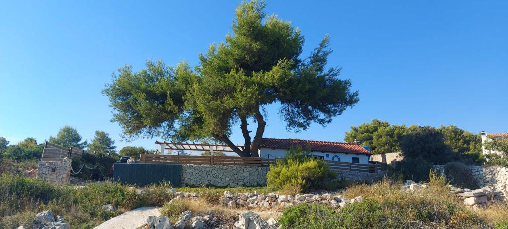 Drvenik Mali ist eine Insel, die etwa 8 Seemeilen von der Stadt Trogir entfernt liegt und mit der sie durch eine Fährlinie verbunden ist (die Fahrt dauert etwa 1 Stunde und es gibt drei, d. h. vier tägliche Linien). Es ist ein typisches Fischerdorf, weit weg vom geschäftigen und stressigen Lebensstil und daher ideal, um die einzigartige Natur und das kristallklare Meer zu genießen. Die Anlage liegt auf der Südseite der Insel und bietet einen wunderschönen Blick auf das offene Meer und ist 20 m vom Meer entfernt. Sie besteht aus zwei Teilen; ein Haus, in dem es eine Küche, ein Schlafzimmer und eine Toilette gibt (es gibt auch eine Außendusche, die von der Sonne erwärmtes Wasser nutzt), und ein halb souterraines Gebäude, in dem sich das Schlafzimmer befindet. Es nutzt Strom aus der Solaranlage und das Wasser ist Regenwasser. Die Küche ist mit einem Gasherd und einem Kühlschrank mit Gefrierfach ausgestattet. Darüber hinaus verfügt es über TV und Internetzugang. In unmittelbarer Nähe befindet sich die Bucht Vela Rina mit einem wunderschönen Sandstrand.