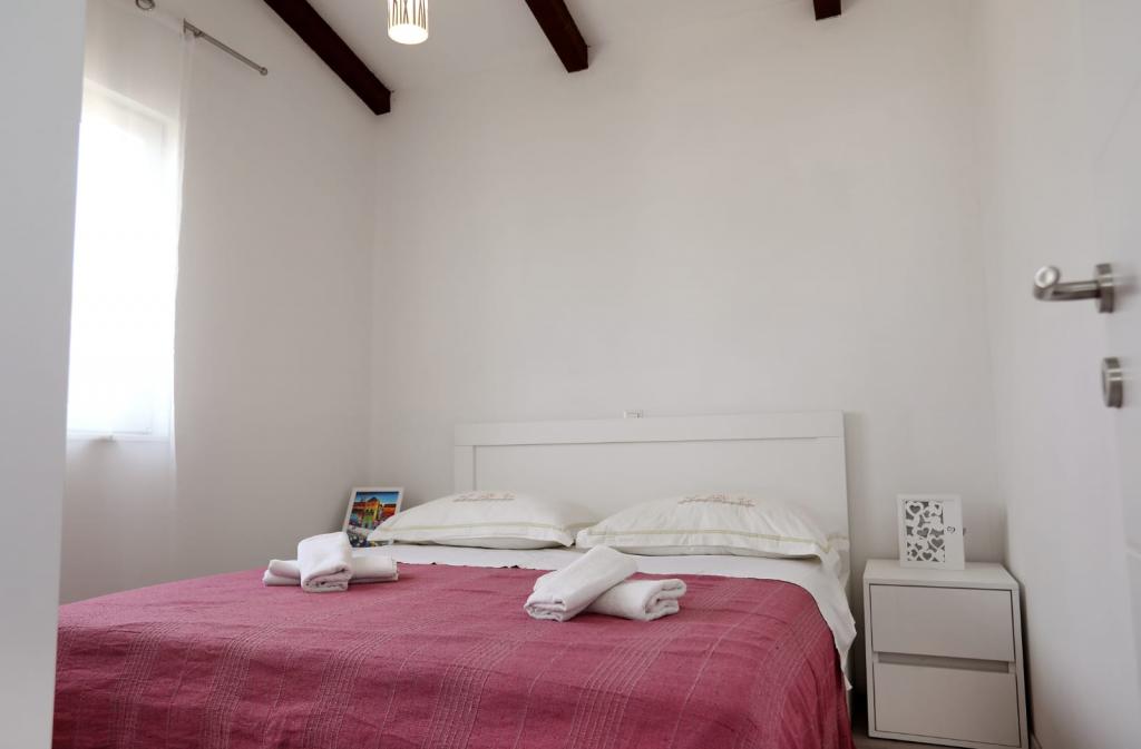 Ein modernes und voll ausgestattetes Haus, versteckt auf der Punta selbst, auf der Südseite von Mali Drvenik und nur 10 Autominuten vom Fähranleger Borak entfernt. In Borak gibt es einen Supermarkt mit Grundnahrungsmitteln, eine Klinik und eine Möglichkeit, Fährtickets zu kaufen. Das Haus liegt direkt am Meer, etwa 30 m vom Meer entfernt, an der sogenannten „ploči“, ein steiniger, unberührter Naturstrand mit kristallklarem Meer. Es ist mit Sonnenkollektoren ausgestattet und das Wasser ist Regenwasser aus dem Wald, also nicht trinkbar. Ein paar Minuten angenehmen Spaziergangs (ca. 700 m) entfernt liegt ein einzigartiger Sandstrand auf der Insel – Vela Rina mit einer lokalen Café-Bar und einem Restaurant.