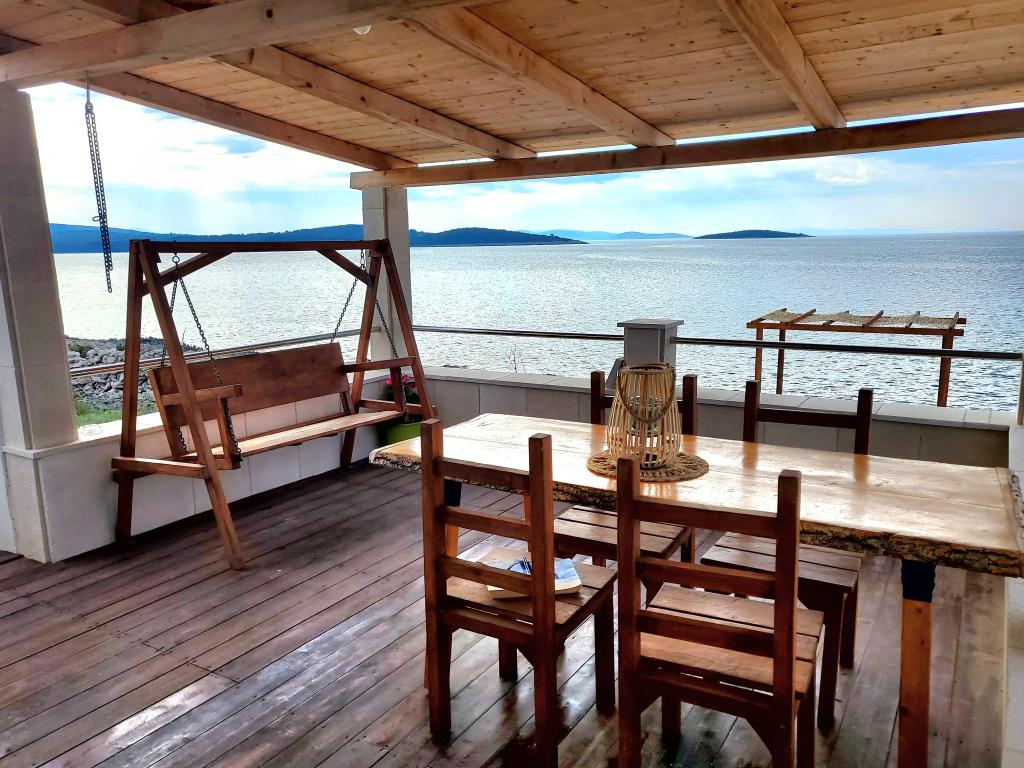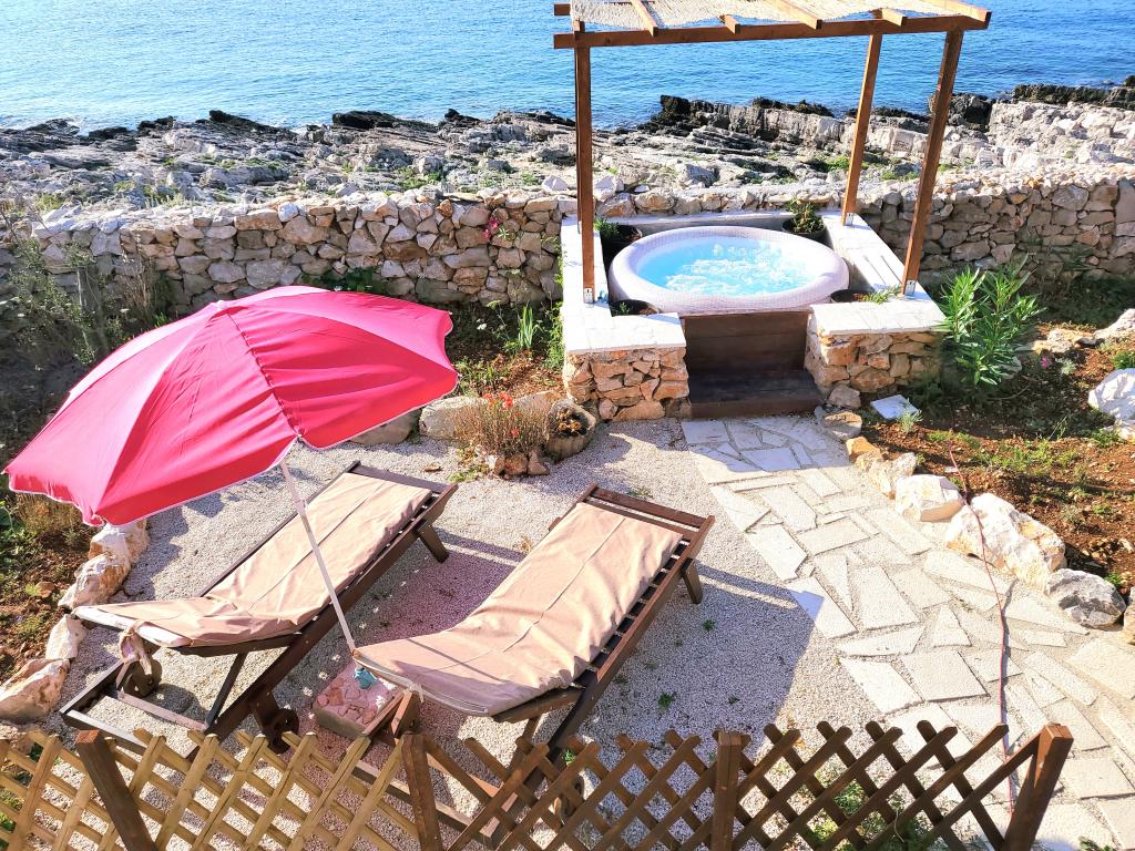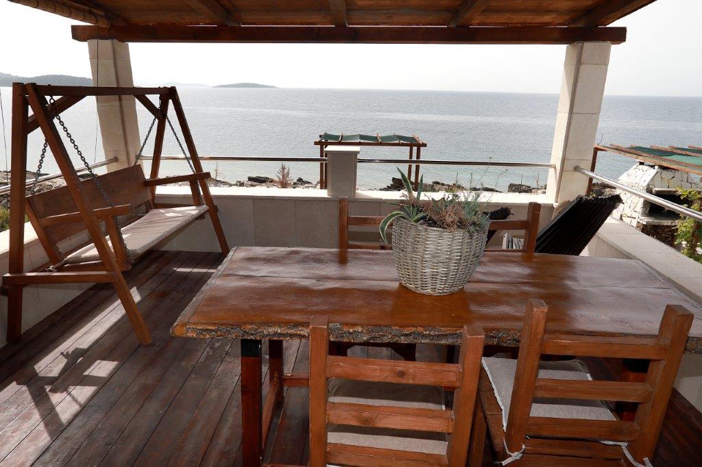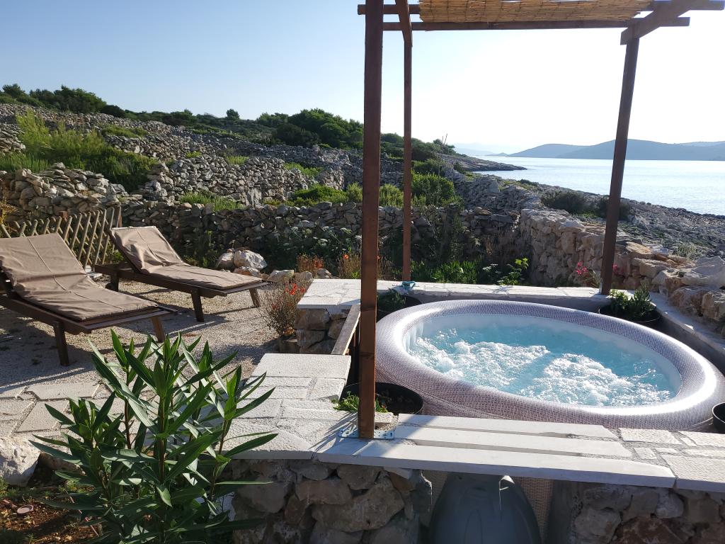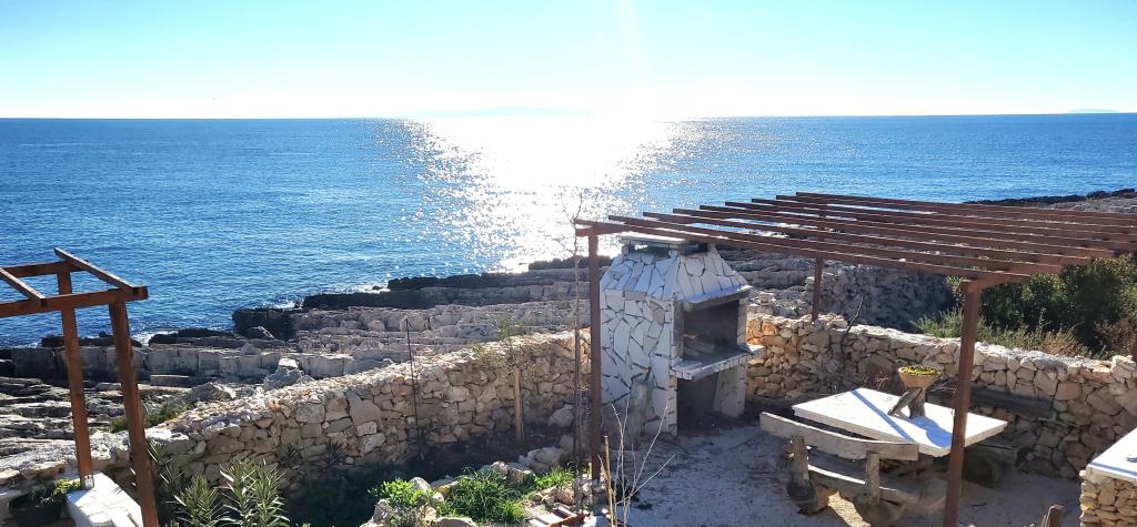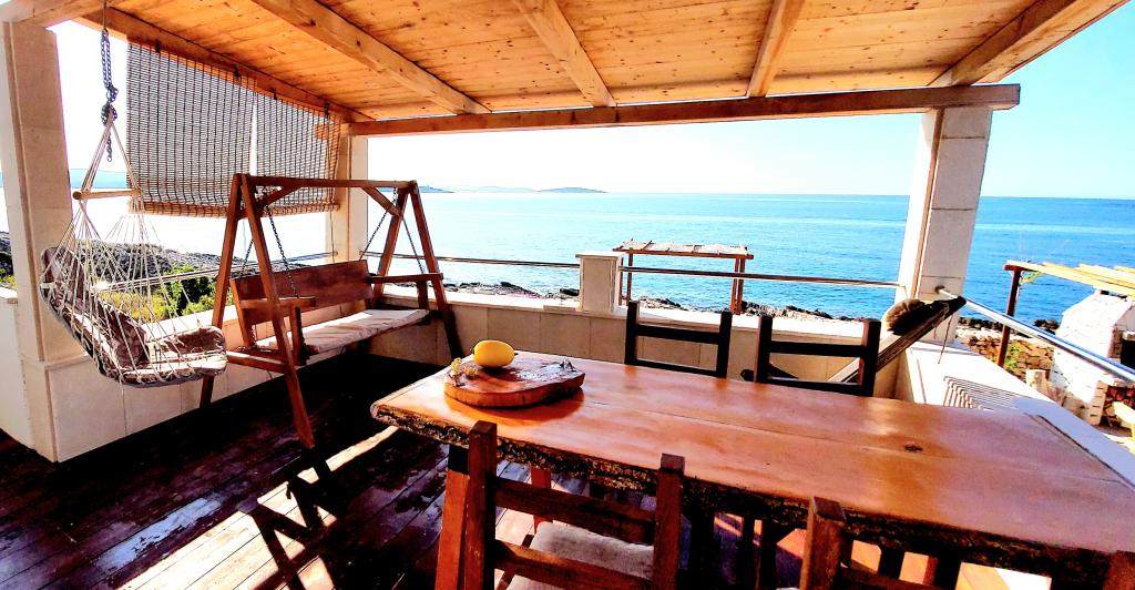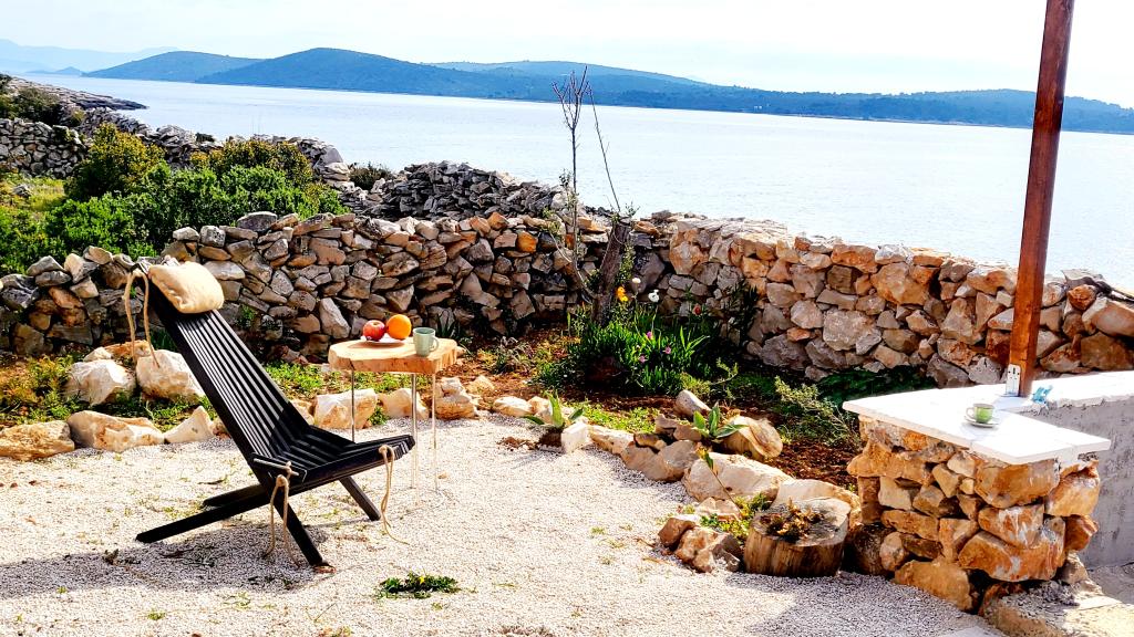 An der Adria findet man überall Meer und Sonne, doch wer sich fernab vom Lärm der Stadt und den Passanten und inmitten traumhafter Sonnenauf- und -untergänge erholen möchte, für den ist diese Insel nahe Trogir ideal. Ein zauberhaftes Ferienhaus direkt am Meer, betrieben mit Solarenergie, bietet neben dem Meerblick auch einen atemberaubenden Blick auf die von den Wellen geformten Felsen und die Inseln Drvenik Veli, Hvar und Vis. Dieses kleine, märchenhafte Haus ist perfekt für alle, die Natur und duftendes Grün lieben. Es besteht aus einer Küche mit Ess- und Wohnbereich, einem Badezimmer und zwei Schlafzimmern. Im ersten Stock befindet sich ein ausgebautes Dachgeschoss mit einem Zimmer, einer Toilette und einem Balkon. Vor dem Haus lädt eine Terrasse mit Liegestühlen zum Verweilen und Genießen des herrlichen Meerblicks ein. Grillfreunde finden hier eine große Feuerstelle mit Tisch und Bänken. Eine Außendusche ist ebenfalls vorhanden. Wenn Sie also einen Ort suchen, an dem die Zeit langsam vergeht, und wenn Sie Ruhe, blaues Meer und unberührte Natur genießen möchten, dann kommen Sie zu uns. :)