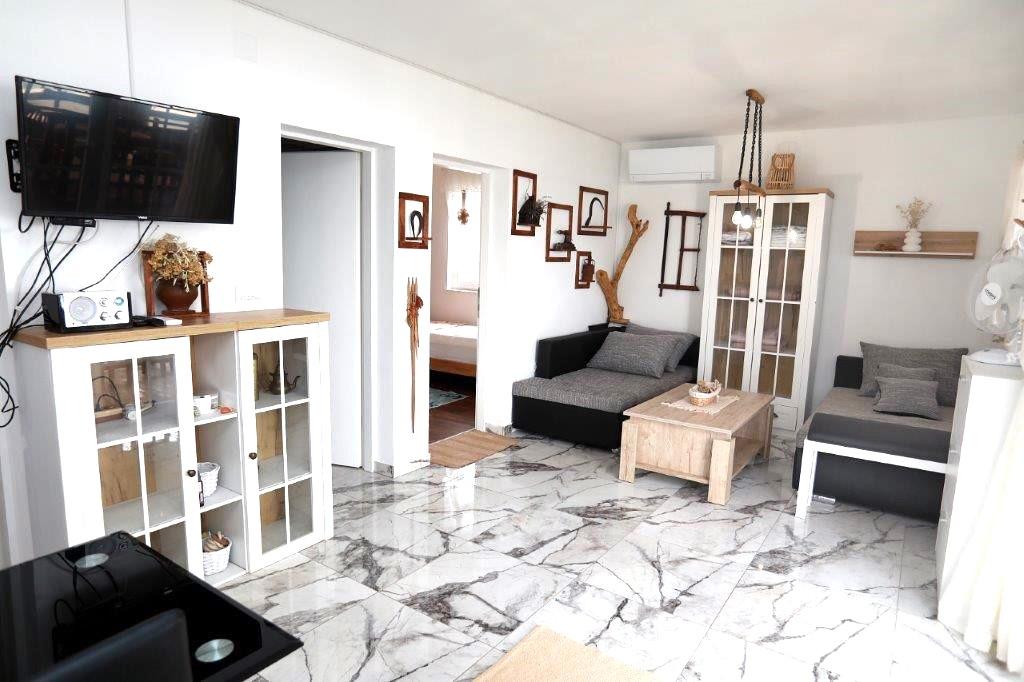 Wir haben mit unserer Familie 10 unvergessliche Tage auf See verbracht. Wir haben viel Karten gespielt, gespielt, gebadet... wir waren zufrieden mit der Ruhe und den schönen Aussichten. Der Empfang war großartig, die Besitzer waren super freundlich und haben sogar das Mittagessen für uns zubereitet. Die Wohnung war sauber und noch schöner als wir erwartet hatten. Sie haben alles, was Sie für einen wunderschönen Urlaub brauchen, aber vergessen Sie nicht, alles mitzubringen, was Sie brauchen, von Lebensmitteln, Getränken bis hin zum Nötigsten. Wir hatten damit kein Problem, weil wir darauf vorbereitet waren. Ansonsten gibt es eine tolle Verbindung mit der Fähre nach Trogir, wo man zum Einkaufen, zum Markt oder zum Arzt gehen kann. Ich empfehle auf jeden Fall einen Besuch der Stadt.