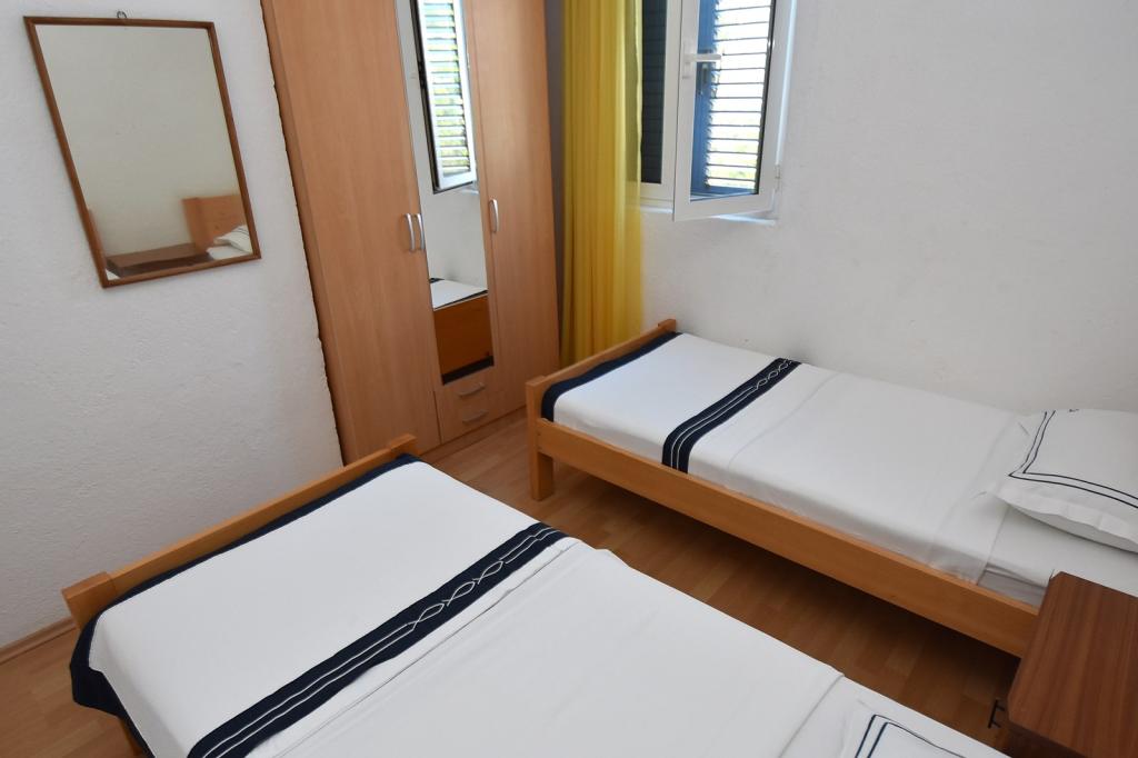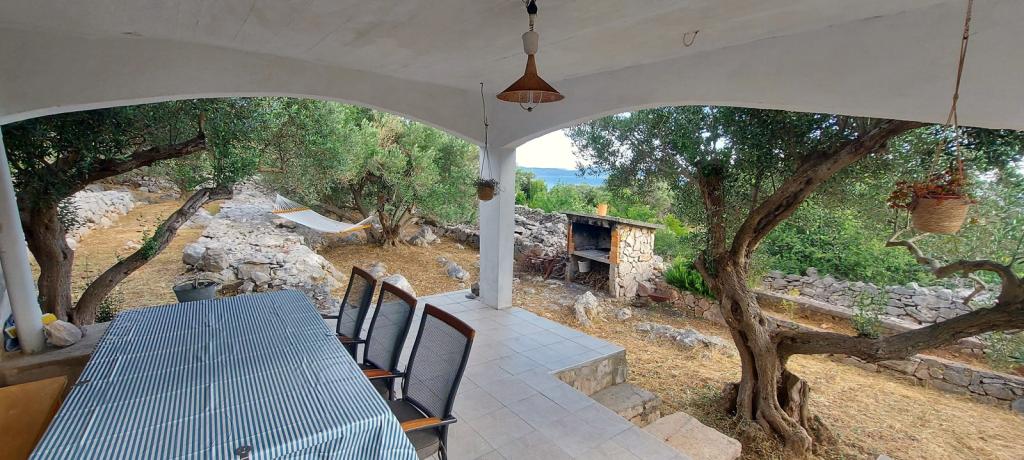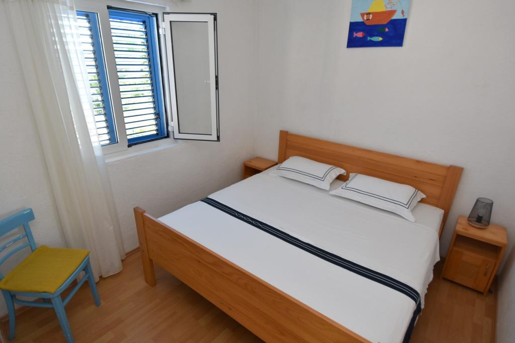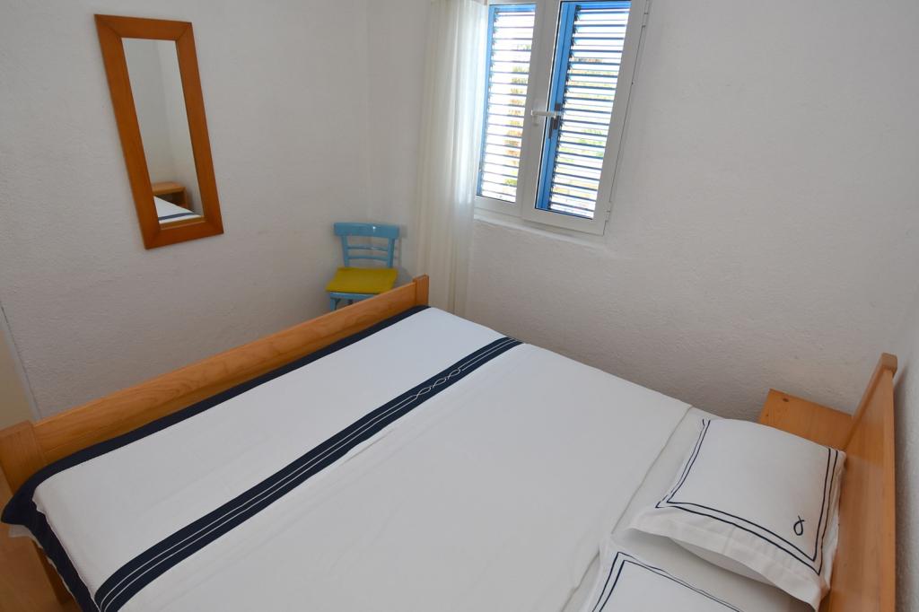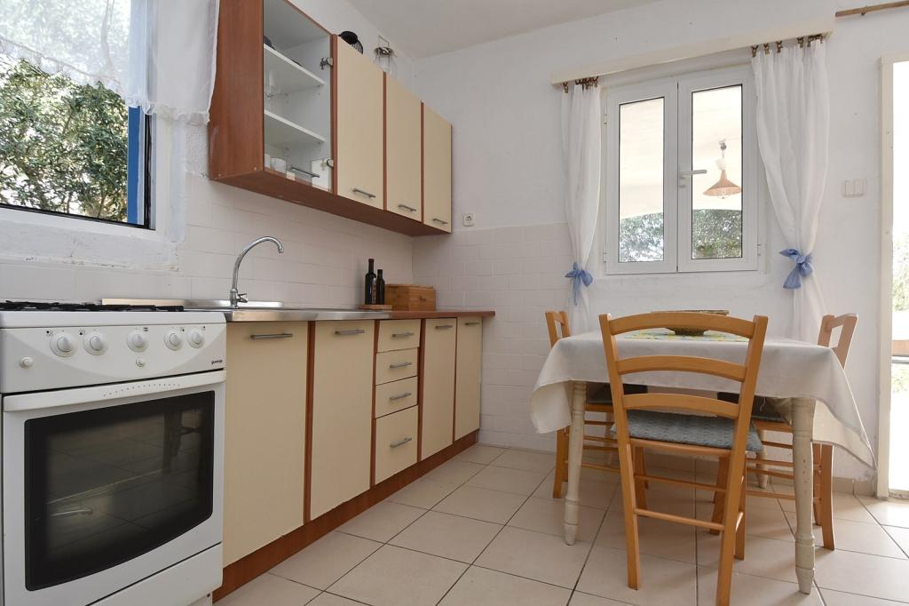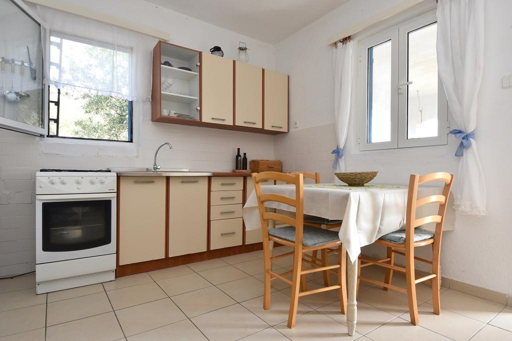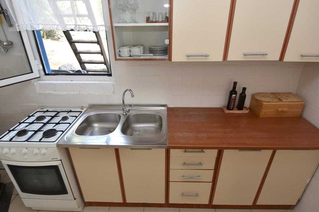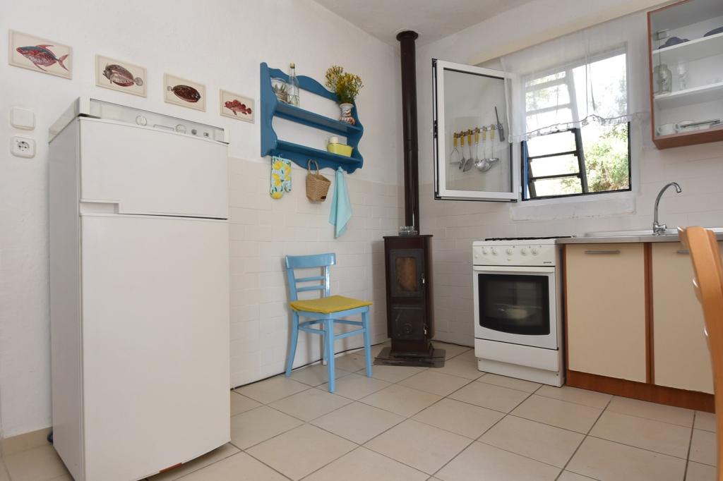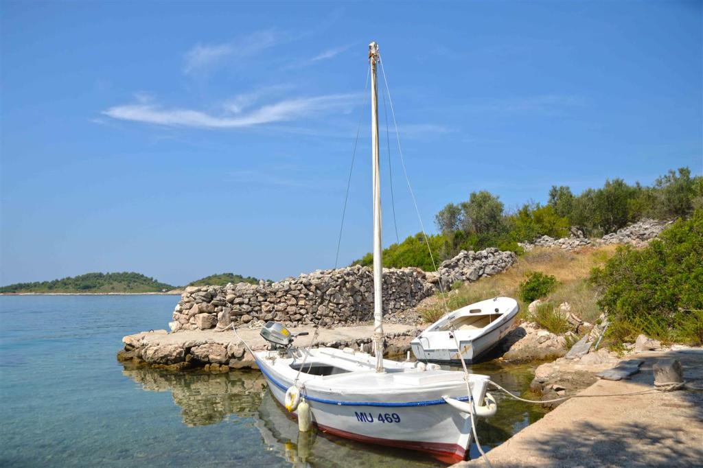 Das Fischerhaus Milan befindet sich auf der Insel Sit, die Teil des Kornaten-Archipels ist. Sit ist die drittgrößte Insel im Kornaten-Archipel und die grünste Insel. Die Insel ist eine wahre Oase der Ruhe. Sie hat nur wenige Buchten mit wenigen Häusern darauf. Das Haus liegt in einem Olivenhain, nur 70 m vom Meer entfernt. Es verfügt über 3 Schlafzimmer und ist ideal für einen Familienurlaub, der dem Stadtleben entfliehen und die Natur und das Meer genießen möchte. Sie können Schwimmen, Sonnenbaden, Tauchen, Angeln, wunderschöne Sonnenuntergänge und einen klaren Sternenhimmel genießen... Das Haus verfügt über zwei Schlafzimmer mit einem Doppelbett und eines mit zwei Einzelbetten. Die Küche ist mit allem ausgestattet, was Sie zum Kochen und Servieren benötigen. Sie verfügt über einen großen Kühlschrank mit Tiefkühlfach. Das Badezimmer hat eine Dusche. Von der großen Terrasse bietet sich ein Blick auf den Olivenhain, das Meer und die benachbarten Inseln. Die Terrasse verfügt über einen Tisch und Stühle sowie zwei Liegestühle. Der Grill befindet sich direkt neben der Terrasse. Der Strom im Haus wird durch Solarmodule gewonnen und hat eine Spannung von 220 V. Er wird für die Beleuchtung und das Aufladen von Mobiltelefonen verwendet. Parkplätze stehen in M