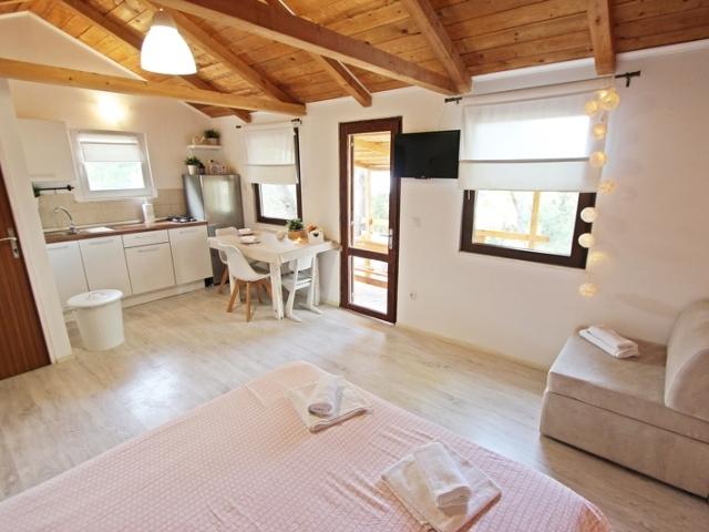Das Haus liegt auf der Insel Mali Vinik. Es ist isoliert. Von der Terrasse des Hauses hat man einen Blick Richtung Murter. Mit dem Boot erreichen Sie Murter in 5 Minuten. Das Ferienhaus verfügt über eine Küche und ist mit einem Gasherd, einem Kühlschrank mit Gefrierfach, einer Toilette, einem offenen Schlafzimmer mit einem Bett 160 × 200 und einem Zustellbett für eine dritte Person ausgestattet. Der Strom im Haus beträgt 220 V und wird mit Hilfe von Sonnenkollektoren gewonnen. Die Dusche befindet sich außerhalb des Hauses. Das Haus ist mit einem Fernseher, Satellitenempfänger und kostenfreiem WLAN ausgestattet. Das Haus verfügt über einen Grill und einen Bereich mit Liegestühlen zum Sonnenbaden. Es verfügt über eine eigene Uferpromenade und einen eigenen Strand. Parkplätze stehen zur Verfügung und sind im Preis inbegriffen. Der Transfer zum Haus und zurück erfolgt per Boot vom Eigentümer des Hauses und ist im Preis inbegriffen. Es besteht die Möglichkeit, ein Boot zu mieten. Der Preis beträgt 30 € pro Tag. Haustiere sind erlaubt und kosten 6 € pro Tag.