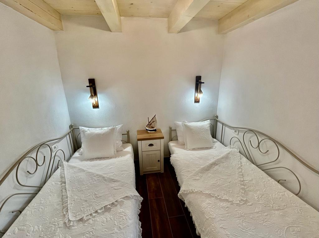Luxuriöses, abgelegenes Haus in einem Olivenhain, direkt am Meer. Wir bieten eine unvergessliche Robinson-Atmosphäre und hochwertige Unterkünfte. Die Anreise zum Anwesen ist mit dem Auto möglich. Weitere Parkplätze vorhanden. Wir bieten einen großen Whirlpool, Gartenmöbel im Freien, Sonnenliegen, Schaukeln, einen großen Steingrill und eine Außendusche. Die Anlage ist komplett für einen komfortablen Aufenthalt ausgestattet, Küche mit allen Geräten (Gasherd, Kühlschrank, Gefrierschrank, Geschirrspüler, Kaffeemaschine, Wasserkocher...WLAN, Internet, Sat-TV. Der Raum ist klimatisiert und verfügt über eine Zentrale Heizung, die es Ihnen ermöglicht, auch im Winter zu bleiben. Das Badezimmer verfügt über eine geräumige ebenerdige Dusche, eine Waschmaschine und andere Geräte.