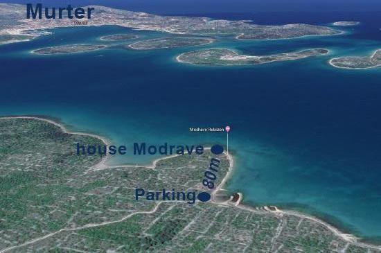 Die Anlage befindet sich 10 Minuten vom Zentrum von Murter entfernt und besitzt einen eigenen Liegeplatz für das Boot. Es ist möglich, die Anlage mit dem Boot und mit dem Auto nur zu erreichen, wenn Sie das Auto auf einer Schotterstraße fahren. Sichere Parkplätze am Murter stehen Ihnen kostenfrei zur Verfügung. Auch für den Haustransport kostenlos gesichert. Das Haus liegt an der Küste 10 Meter vom Meer entfernt. Das Objekt hat 240V Strom aus Sonnenenergie. Das Wasser kommt aus dem Tank und muss vernünftig verbraucht werden. Das Haus ist für Radfahrer geeignet, da es sich in der Nähe von Radwegen befindet. Das Haus ist in Abgeschiedenheit und ist ideal für Ruhe und Erholung.
