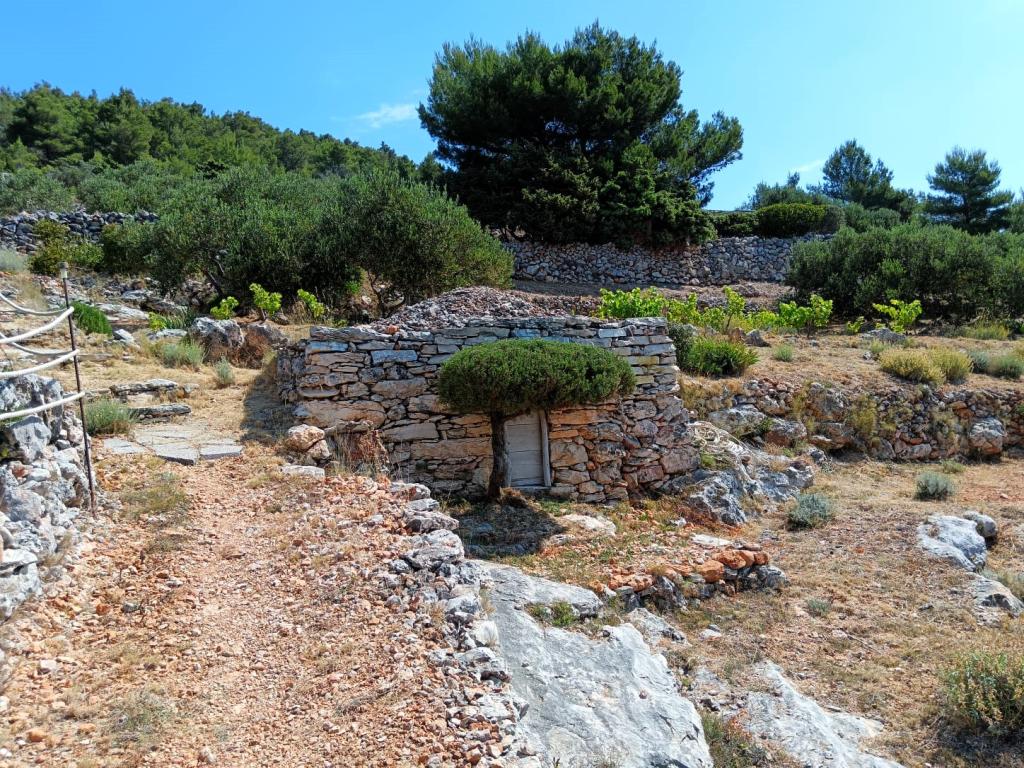 Das Haus Ljubica liegt auf der Südwestseite der Insel Murter in der Bucht Velika Doca, in unberührter Natur in einem restaurierten Olivenhain, fernab von Beton und Asphalt, mit Blick auf die Kornaten, 40 Meter von der klaren Adria entfernt. Wenn Sie dem alltäglichen Lärm von Autos und lauten Cafés entfliehen und an einem ruhigen Ort den Sonnenuntergang beobachten möchten, dann ist dies der richtige Ort für Sie. Dies ist ein Ort, an dem Sie Sonnenauf- und -untergang beobachten können, ein Ort, an dem Sie die Sterne am Himmel ohne Lichtverschmutzung betrachten können, und das offene Meer, das sich von den Inseln Kaprija und Žirje bis zu den Kornaten erstreckt. Es ist 15 Gehminuten von Ihrem Auto entfernt und von wunderschönen felsigen Stränden umgeben, an denen Sie im kristallklaren Meer schwimmen und tauchen können. Hier ist Ihr Urlaub garantiert.