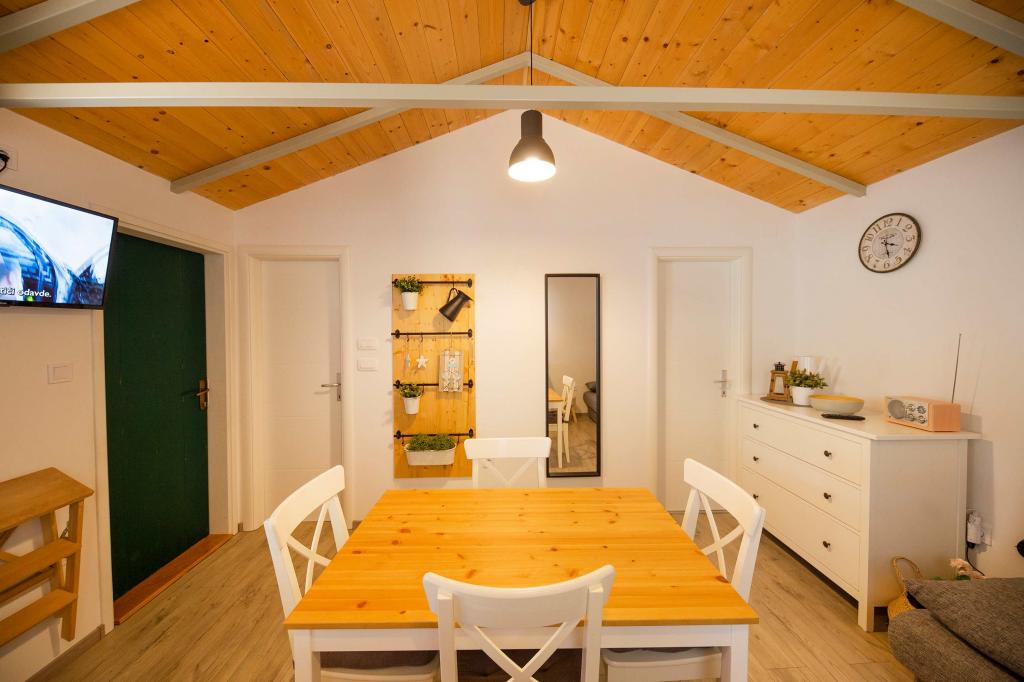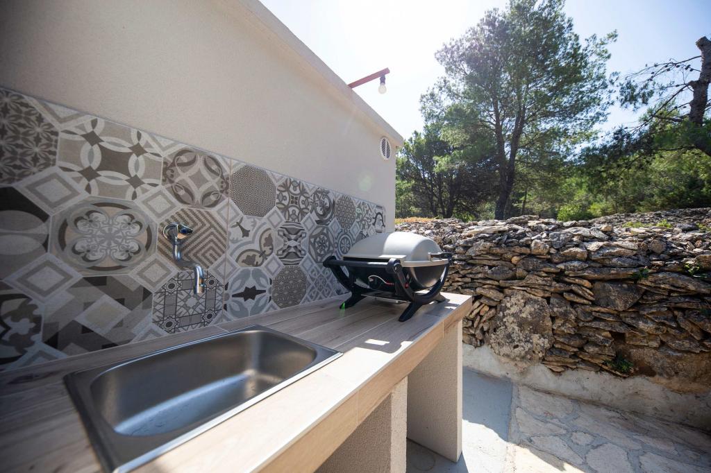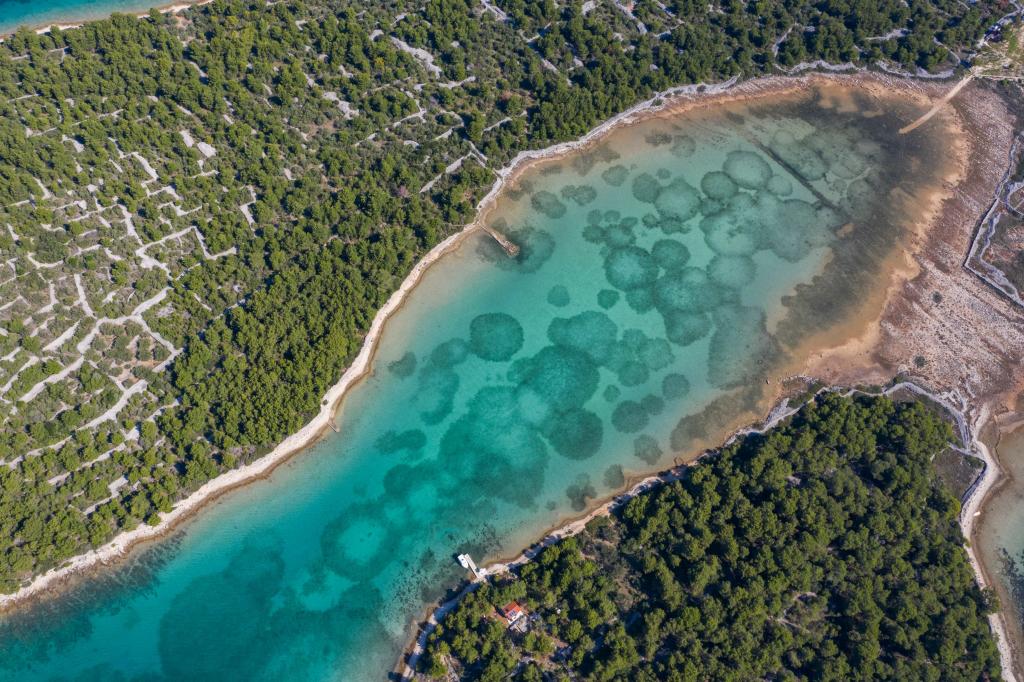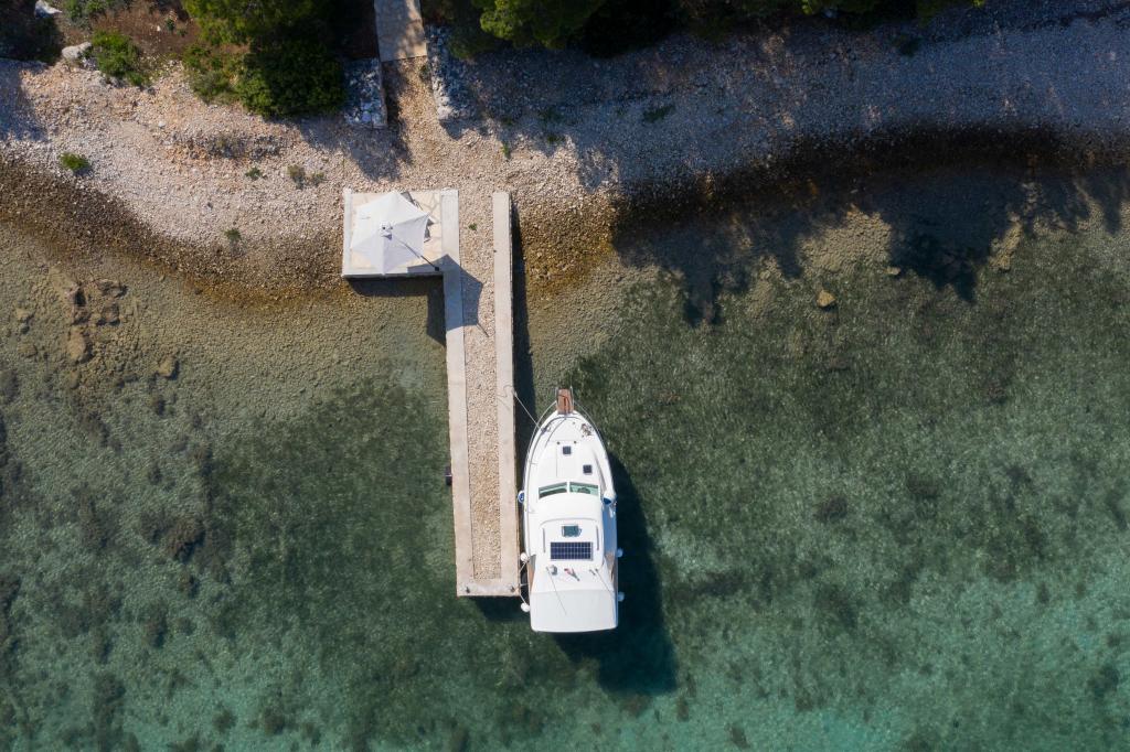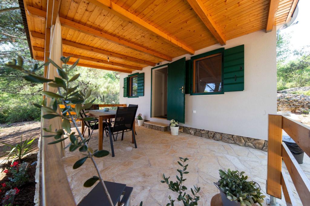 Das Sea House Modrave befindet sich in der Zečica-Bucht, 15 Minuten von Murter entfernt. Es ist 10 Meter vom Meer entfernt und verfügt über einen eigenen Bootsanleger. Die Anlage ist nur mit dem Boot erreichbar. Kostenlose Parkplätze stehen in Murter zur Verfügung, ebenso wie ein Transfer zum Haus. Das Haus verfügt über ein Schlafzimmer mit Doppelbett, ein Badezimmer mit Dusche und ein Schlafsofa für zwei weitere Personen. Die Küche ist mit einem Kühlschrank mit Gefrierfach und einem Gasherd ausgestattet. Zur Ausstattung gehören ein Fernseher mit Satellitenempfang, Internetanschluss mit WLAN und eine Klimaanlage. Das Haus wird mit Solarenergie und Regenwasser betrieben, was bei sparsamer Nutzung ausreichend ist. Haustiere sind erlaubt und kosten 5 Euro pro Tag.