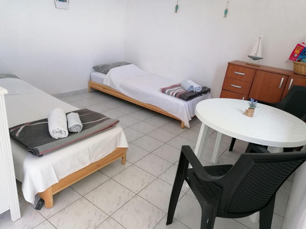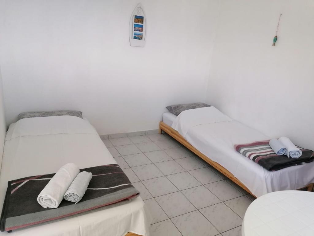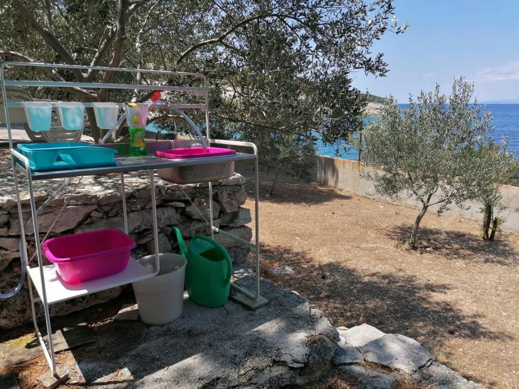 Verfügbare Termine: 16.-23.8.2025 und ab 11.9. Das Haus liegt in der Bucht Dučac, 6 km von Postira auf der Insel Brač entfernt. Es ist ideal für Liebhaber des Robinson-Tourismus, die Natur und Ruhe schätzen. In der Bucht gibt es keine Wasserversorgung, aber wir haben eine Zisterne zum Geschirrspülen und Duschen im Freien sowie Sonnenkollektoren, die für die Beleuchtung und das Aufladen von Mobiltelefonen ausreichen. Trinkwasser muss gekauft werden. Es gibt ein gutes Telefonsignal. Das Haus verfügt über 2 Zimmer: eines mit einem Doppelbett und das andere, verbunden mit der Küchenzeile, mit 2 Einzelbetten. Es gibt auch ein Zustellbett. Die Toilette befindet sich in einem separaten Haus (Toilette und Gießkanne). Das Haus verfügt über einen Kühlschrank, einen Gasherd, einen Kamin/Grill im Hof, Küchenutensilien, Geschirr und Bettwäsche. Das Haus selbst ist mit dem Auto erreichbar. Die Straße ist etwas steil, aber neu asphaltiert und weist keine Schlaglöcher auf. Die nahegelegene Bucht Lovrečine, die zum schönsten Strand der Adria gekürt wurde und auch ein Restaurant bietet, kann zu Fuß erreicht werden. Ein Weg am Meer entlang führt zur Bucht.