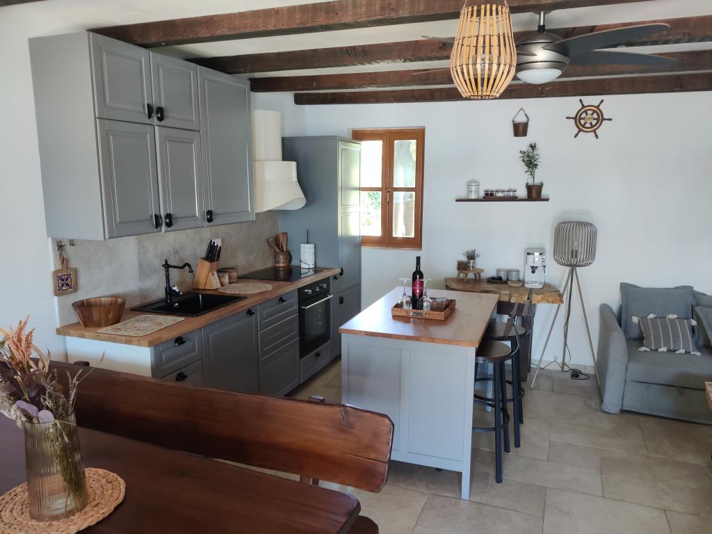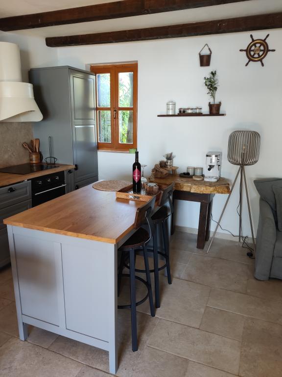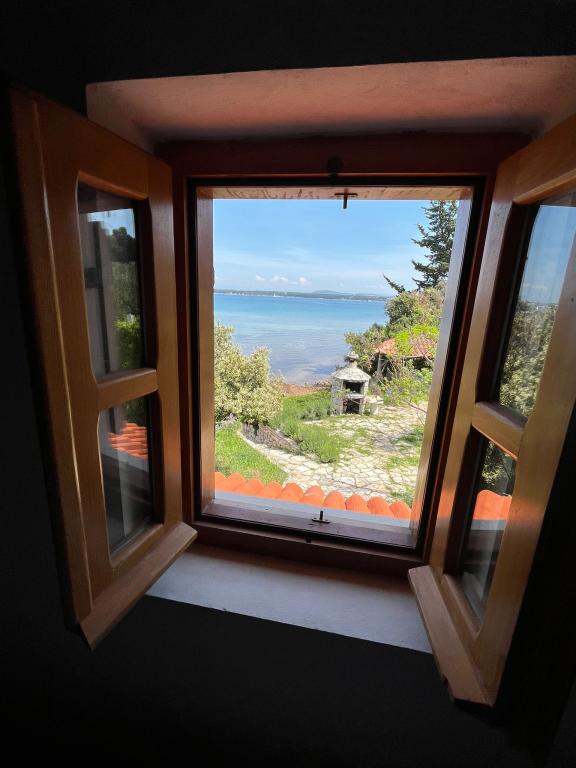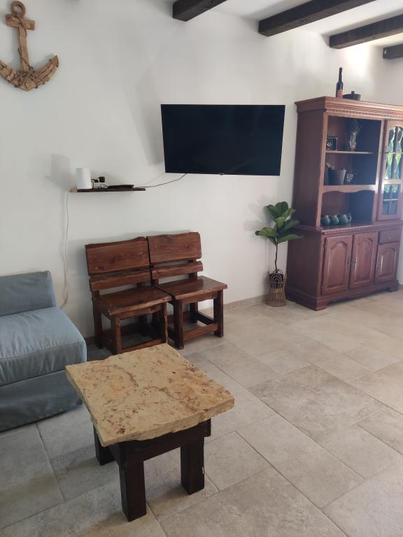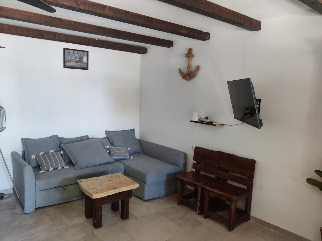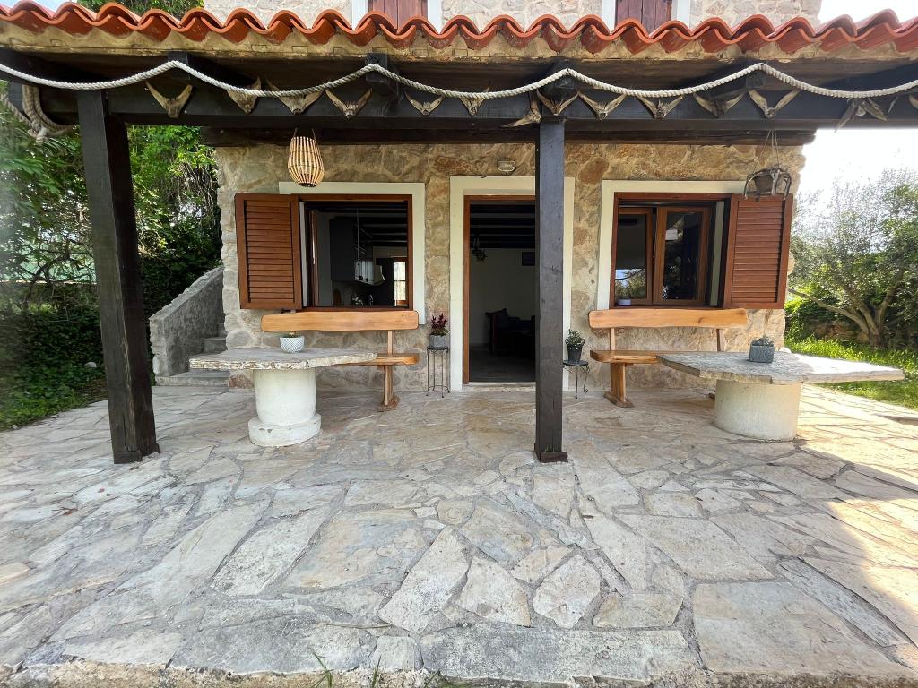 Das Erdgeschoss des Hauses besteht aus einem einzigen Raum mit einer modernen Küche, ausgestattet mit Induktionskochfeld, Backofen, Geschirrspüler und Kühlschrank. Zur weiteren Küchenausstattung gehören ein Wasserkocher und eine Kaffeemaschine. Das Wohnzimmer verfügt über ein Schlafsofa, das sich in ein Gästebett verwandeln lässt, einen kleinen Couchtisch, ein altes Massivholzregal und einen Fernseher mit Satellitenempfang. WLAN ist ebenfalls vorhanden. Direkt neben dem Fenster befinden sich ein Esstisch und Bänke, an denen man essen und den schönen Blick auf Biograd na Moru genießen kann. Im Dachgeschoss befinden sich zwei Schlafzimmer und ein WC. Eines der Schlafzimmer ist mit einem Doppelbett, das andere mit zwei Einzelbetten ausgestattet. Die Klimaanlage im Dachgeschoss sorgt für angenehmen Schlaf. Hinter dem Haus erstrec