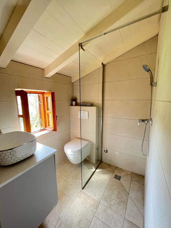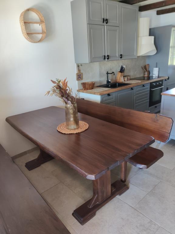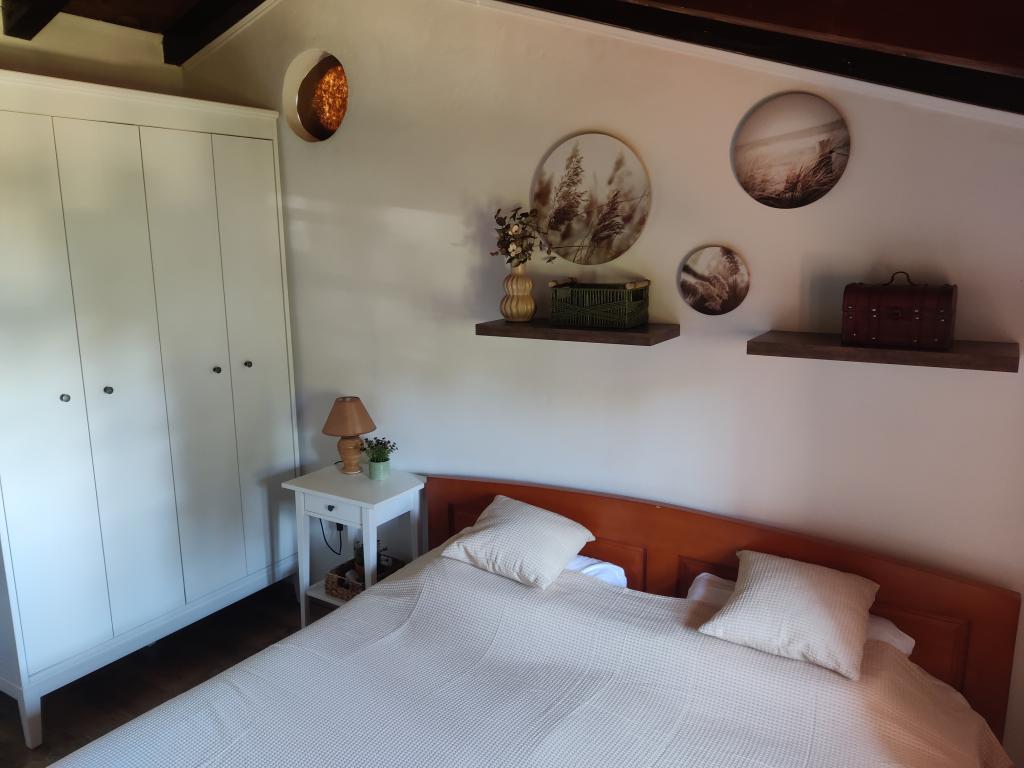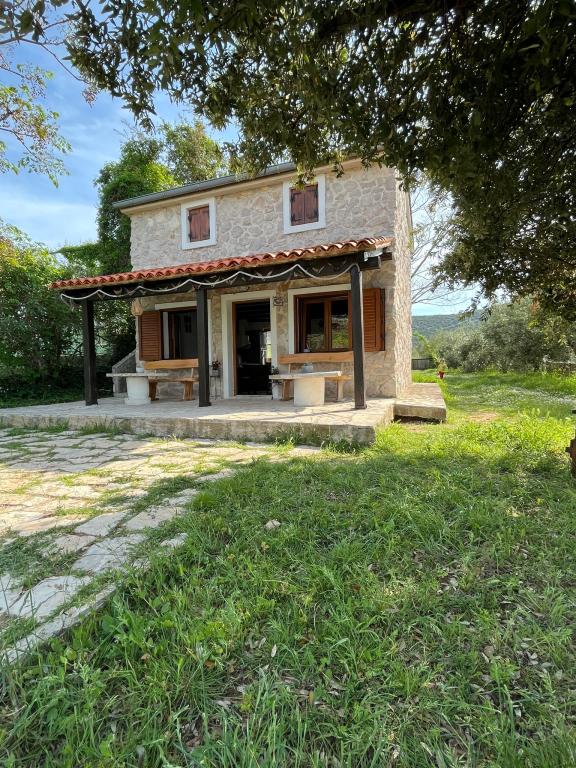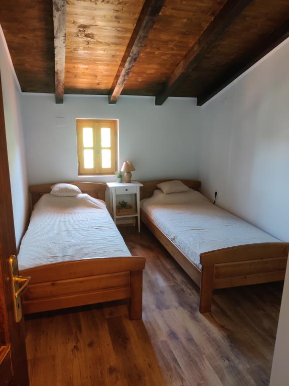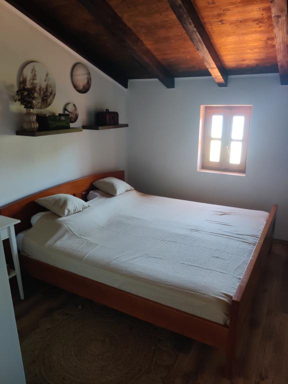 Das Erdgeschoss des Hauses besteht aus einem einzigen Raum mit einer modernen Küche, ausgestattet mit Induktionskochfeld, Backofen, Geschirrspüler und Kühlschrank. Zur weiteren Küchenausstattung gehören ein Wasserkocher und eine Kaffeemaschine. Das Wohnzimmer verfügt über ein Schlafsofa, das sich in ein Gästebett verwandeln lässt, einen kleinen Couchtisch, ein altes Massivholzregal und einen Fernseher mit Satellitenempfang. WLAN ist ebenfalls vorhanden. Direkt neben dem Fenster befinden sich ein Esstisch und Bänke, an denen man essen und den schönen Blick auf Biograd na Moru genießen kann. Im Dachgeschoss befinden sich zwei Schlafzimmer und ein WC. Eines der Schlafzimmer ist mit einem Doppelbett, das andere mit zwei Einzelbetten ausgestattet. Die Klimaanlage im Dachgeschoss sorgt für angenehmen Schlaf. Hinter dem Haus erstrec
