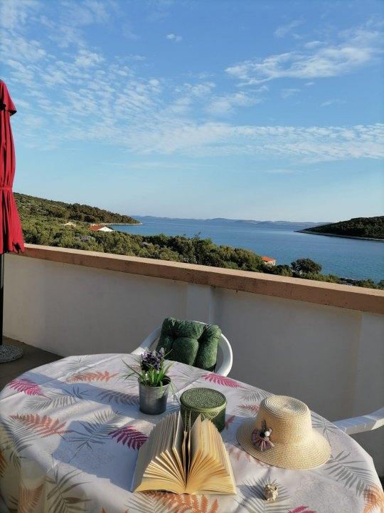 Möchten Sie eine Auszeit vom Alltag nehmen und die Natur um sich herum genießen? Dann ist dies das richtige Haus für Sie. Es liegt auf der Insel Pašman in der Sandbucht Žinčena. Mit seiner fantastischen Lage 70 m vom Meer entfernt bietet es höchsten Komfort für bis zu fünf Personen. Bei Aufenthalten länger als 14 Tage gewähren wir einen Rabatt von 15 %. Dieser Teil der Insel Pašman repräsentiert einen Urlaub im Robinson-Stil. Energie wird ausschließlich aus Sonnenenergie gewonnen, Wasser wird überwiegend durch Regenwasser gewonnen und es herrscht hier ein großer Reichtum. Die Wohnfläche verteilt sich auf zwei Etagen. Im Erdgeschoss gibt es eine ausgestattete Küche mit Wohnzimmer, ein Badezimmer mit Dusche und einen Ausgang zur Terrasse, die einen unwiderstehlichen Blick auf das Meer bietet. Im Obergeschoss befinden sich zwei durch einen großzügigen Balkon verbundene Doppelzimmer mit Blick auf das Meer und ein Einzelzimmer. Der Raum ist klimatisiert, was im Sommer eine große Erleichterung ist. Wir haben eine Außendusche vor dem Haus. Private Parkplätze befinden sich 70 m vom Haus entfernt und Tkona erreichen Sie nach einer 10-minütigen Autofahrt.