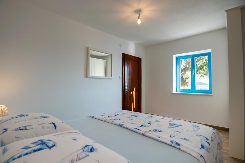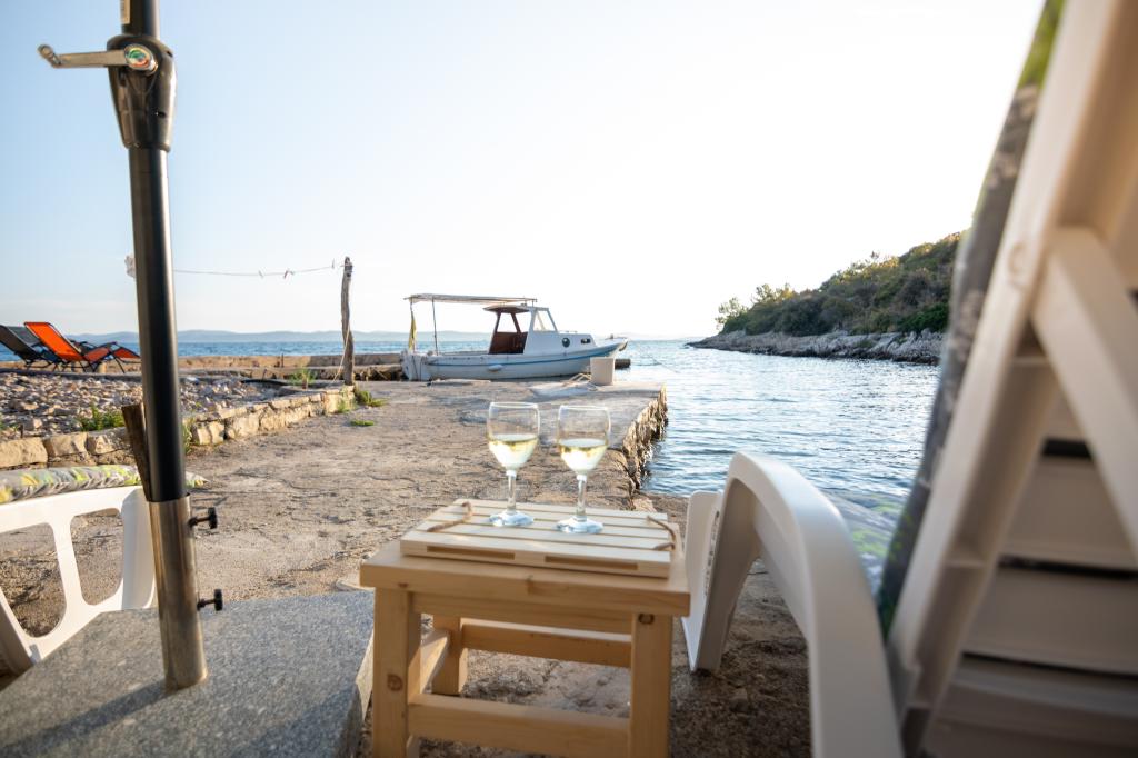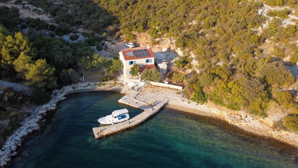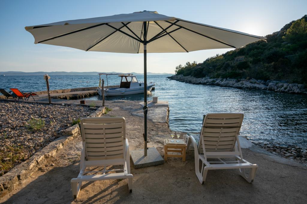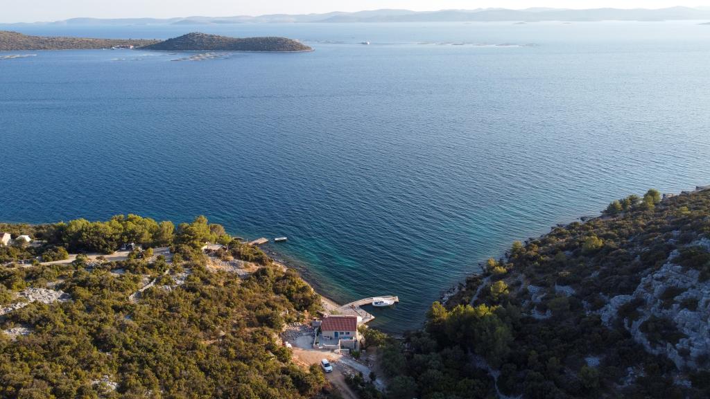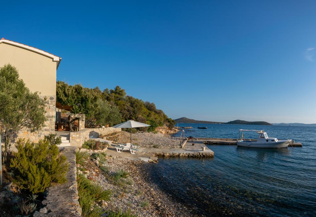 Villa Kovačeva ist das perfekte Haus für einen Traumurlaub. Das Haus liegt auf der Südseite der Insel Pašman mit einem wunderschönen Blick auf den Nationalpark Kornati. Die besondere Bedeutung und Besonderheit der Unterkunft ergibt sich aus ihrer außergewöhnlichen Lage und Position neben dem Strand selbst und einem sicheren Hafen für das Boot. Das Haus ist 110 Quadratmeter groß und verfügt über zwei Schlafzimmer und ein Badezimmer im Obergeschoss und ein Schlafzimmer, ein Wohnzimmer, eine Küche und ein Badezimmer im Untergeschoss. Das Haus ist mit Hilfe von Solarenergie völlig energieautark und mit allen Geräten (Klimaanlage, WLAN, Waschmaschine, TV...) ausgestattet. Die Zufahrtsstraße zum Haus ist in Privatbesitz - eine Eingangsrampe 150 Meter vom Haus entfernt, die absolute Diskretion und einen ruhigen Aufenthalt ermöglicht. Direkt neben dem Haus befindet sich ein Parkplatz für mehrere Autos. Die Unterkunft bietet keine Betreuung für Haustiere.