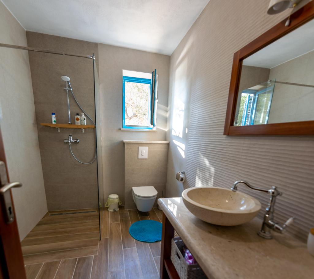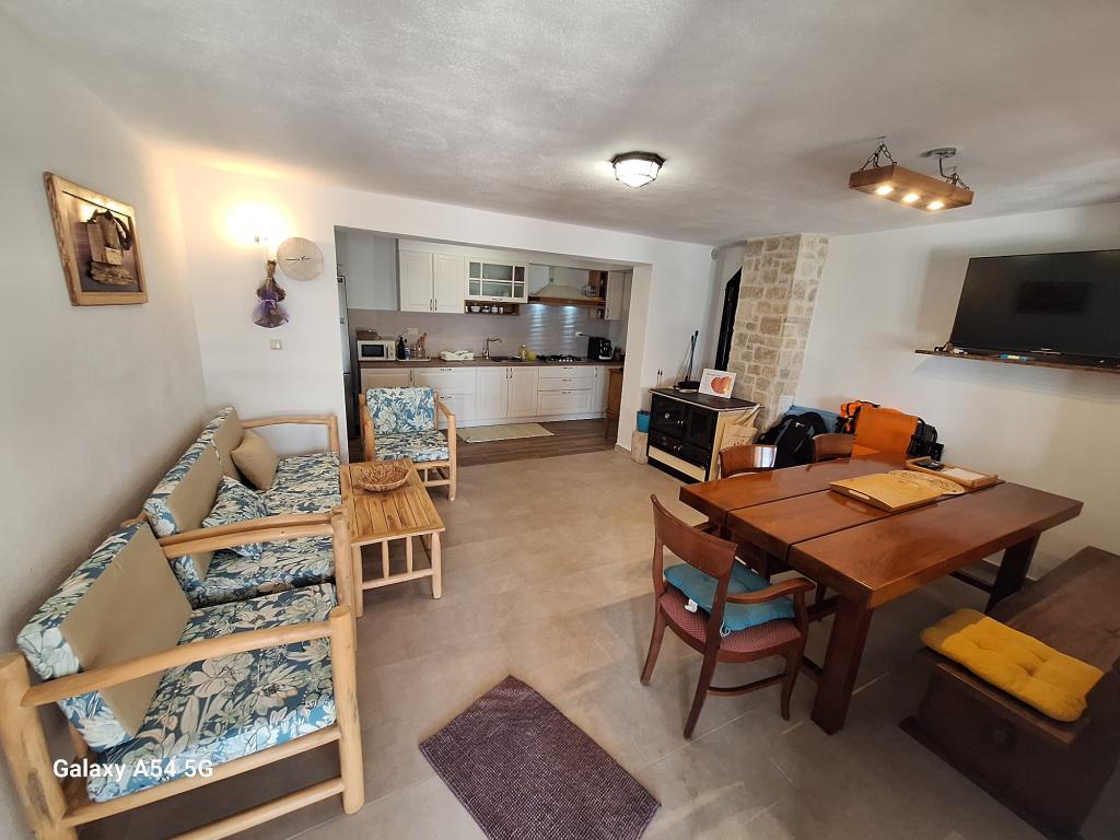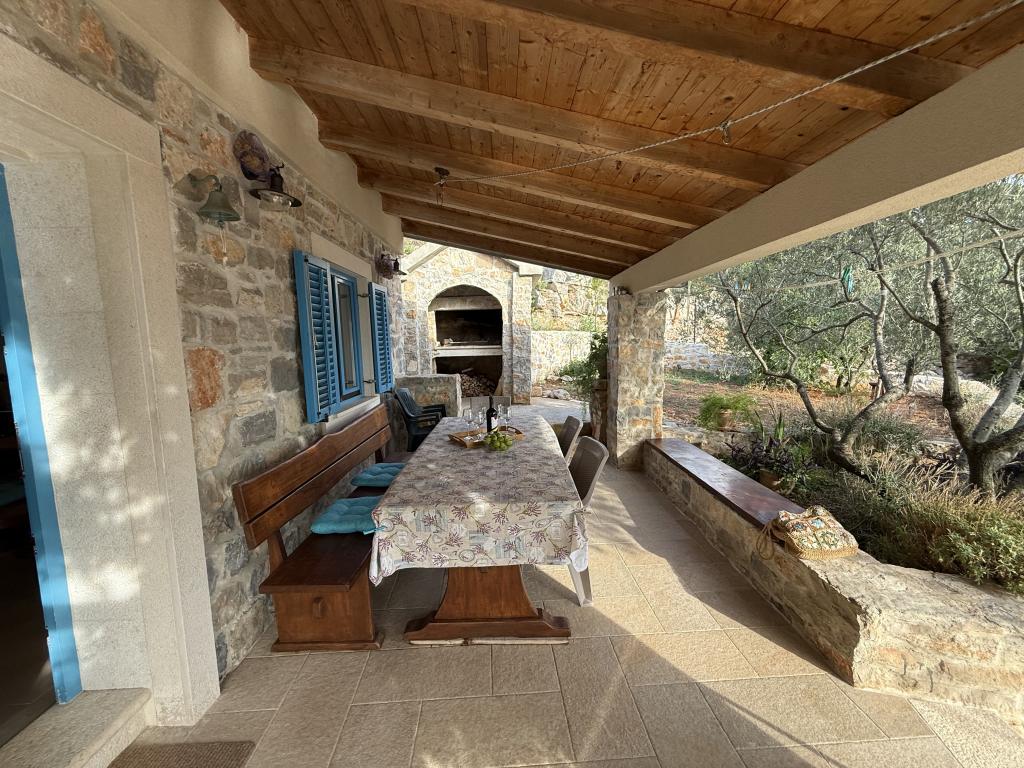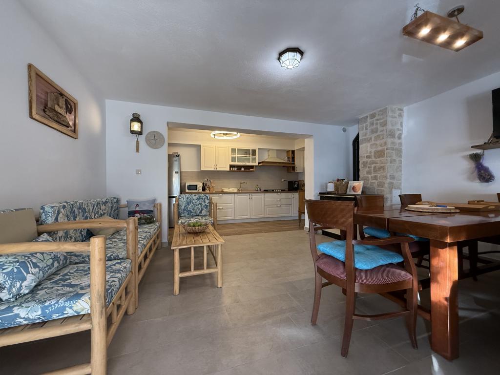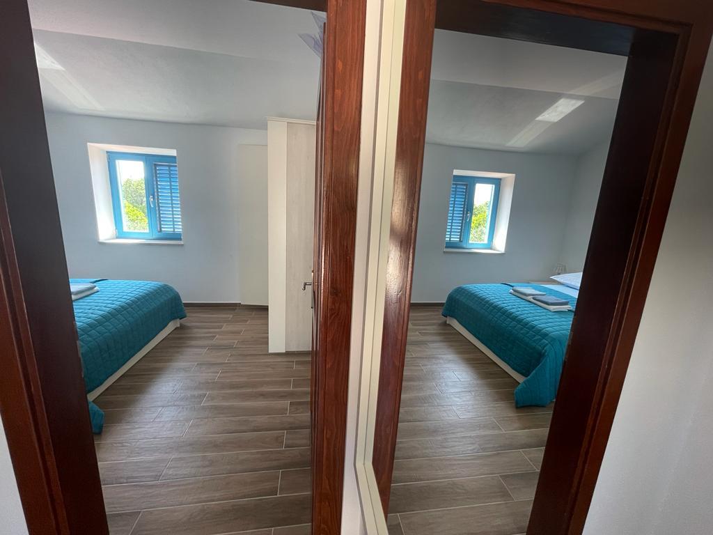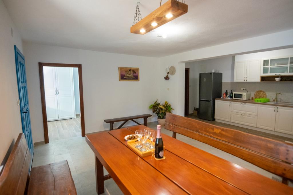 Villa Kovačeva ist das perfekte Haus für einen Traumurlaub. Das Haus liegt auf der Südseite der Insel Pašman mit einem wunderschönen Blick auf den Nationalpark Kornati. Die besondere Bedeutung und Besonderheit der Unterkunft ergibt sich aus ihrer außergewöhnlichen Lage und Position neben dem Strand selbst und einem sicheren Hafen für das Boot. Das Haus ist 110 Quadratmeter groß und verfügt über zwei Schlafzimmer und ein Badezimmer im Obergeschoss und ein Schlafzimmer, ein Wohnzimmer, eine Küche und ein Badezimmer im Untergeschoss. Das Haus ist mit Hilfe von Solarenergie völlig energieautark und mit allen Geräten (Klimaanlage, WLAN, Waschmaschine, TV...) ausgestattet. Die Zufahrtsstraße zum Haus ist in Privatbesitz - eine Eingangsrampe 150 Meter vom Haus entfernt, die absolute Diskretion und einen ruhigen Aufenthalt ermöglicht. Direkt neben dem Haus befindet sich ein Parkplatz für mehrere Autos. Die Unterkunft bietet keine Betreuung für Haustiere.