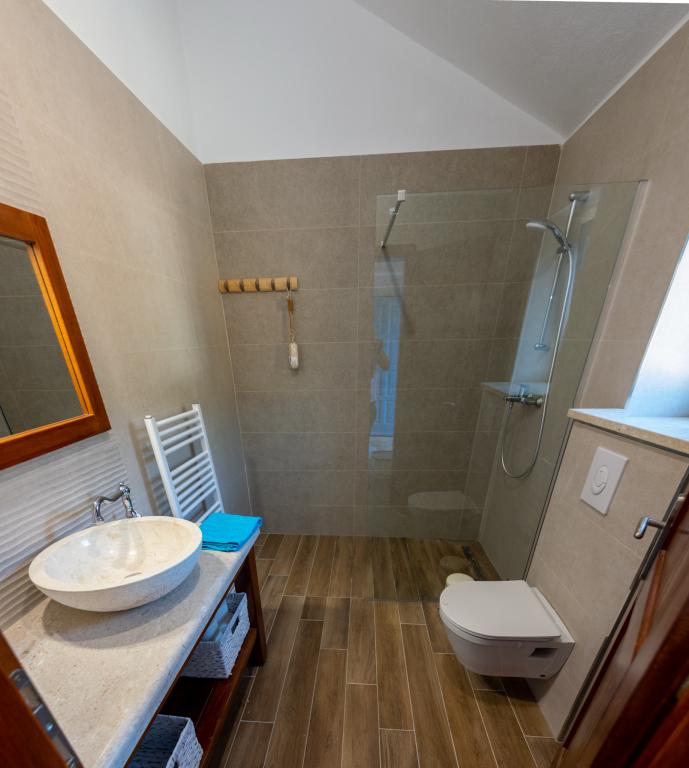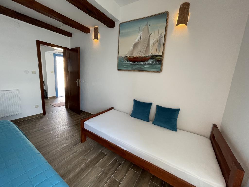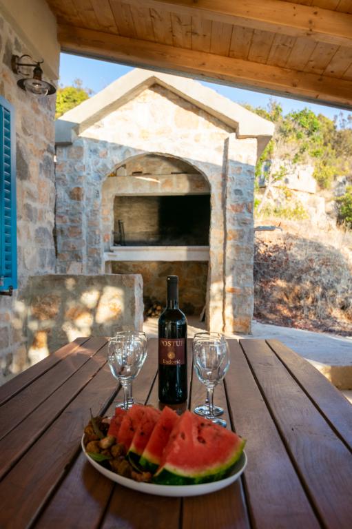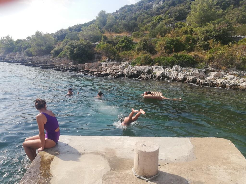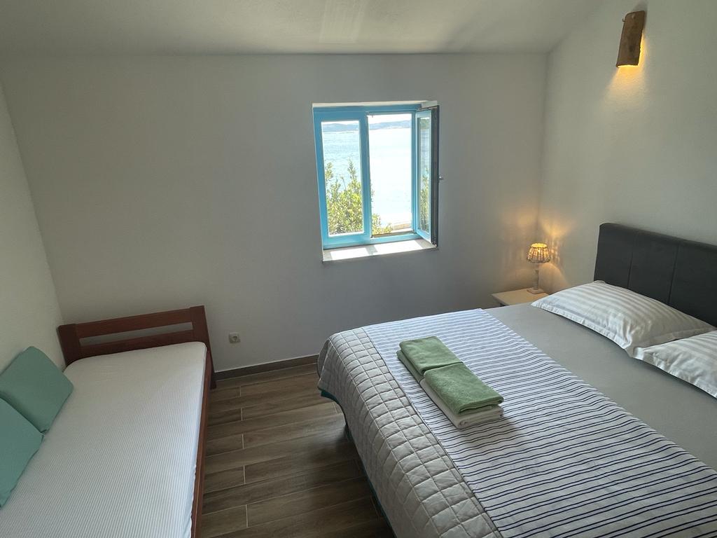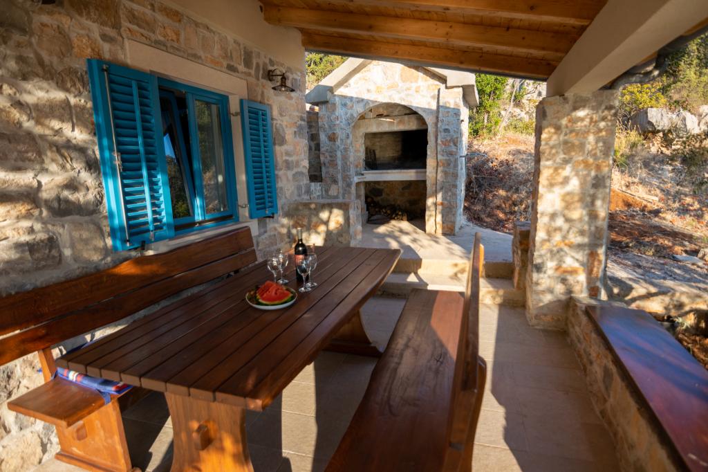 Villa Kovačeva ist das perfekte Haus für einen Traumurlaub. Das Haus liegt auf der Südseite der Insel Pašman mit einem wunderschönen Blick auf den Nationalpark Kornati. Die besondere Bedeutung und Besonderheit der Unterkunft ergibt sich aus ihrer außergewöhnlichen Lage und Position neben dem Strand selbst und einem sicheren Hafen für das Boot. Das Haus ist 110 Quadratmeter groß und verfügt über zwei Schlafzimmer und ein Badezimmer im Obergeschoss und ein Schlafzimmer, ein Wohnzimmer, eine Küche und ein Badezimmer im Untergeschoss. Das Haus ist mit Hilfe von Solarenergie völlig energieautark und mit allen Geräten (Klimaanlage, WLAN, Waschmaschine, TV...) ausgestattet. Die Zufahrtsstraße zum Haus ist in Privatbesitz - eine Eingangsrampe 150 Meter vom Haus entfernt, die absolute Diskretion und einen ruhigen Aufenthalt ermöglicht. Direkt neben dem Haus befindet sich ein Parkplatz für mehrere Autos. Die Unterkunft bietet keine Betreuung für Haustiere.