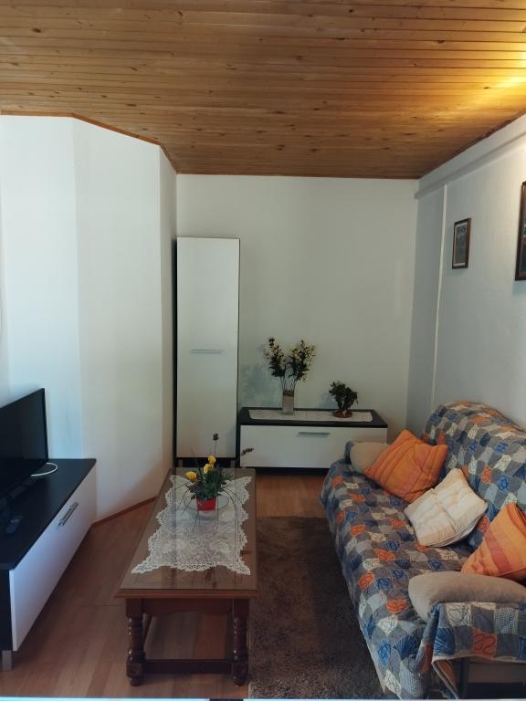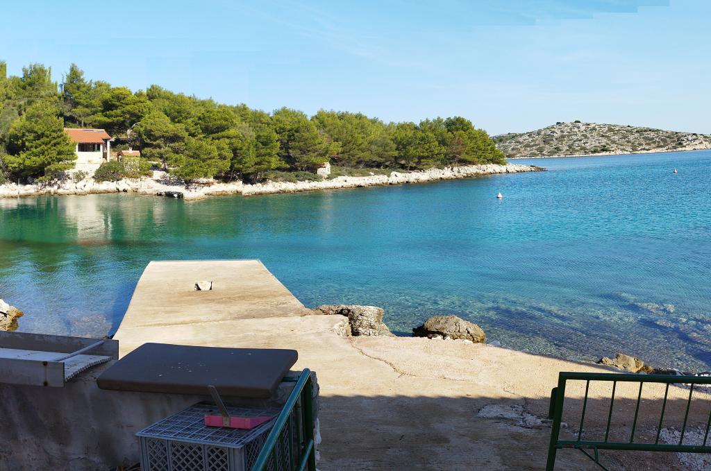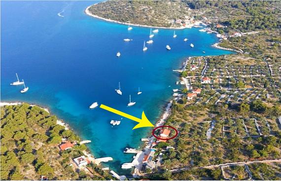 Voll ausgestattete Unterkunft mit 12-V-Stromanschluss und Solaranlage. Gelegen auf der Insel Žut in der Bucht von Dragišina. Sie verfügt über zwei Zimmer, Küche, Abstellraum und Badezimmer, einen großen Garten mit Olivenbäumen, Terrasse, Grill und Außendusche.