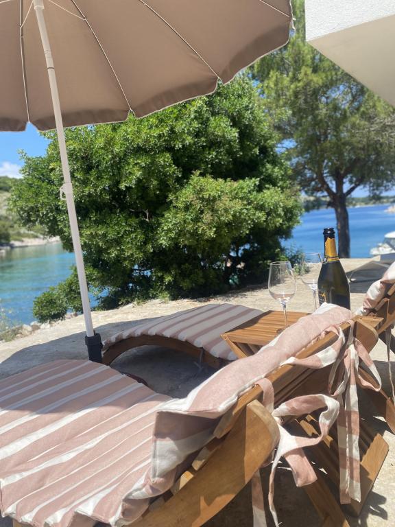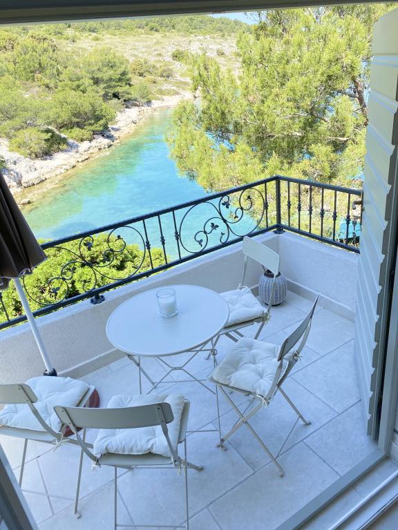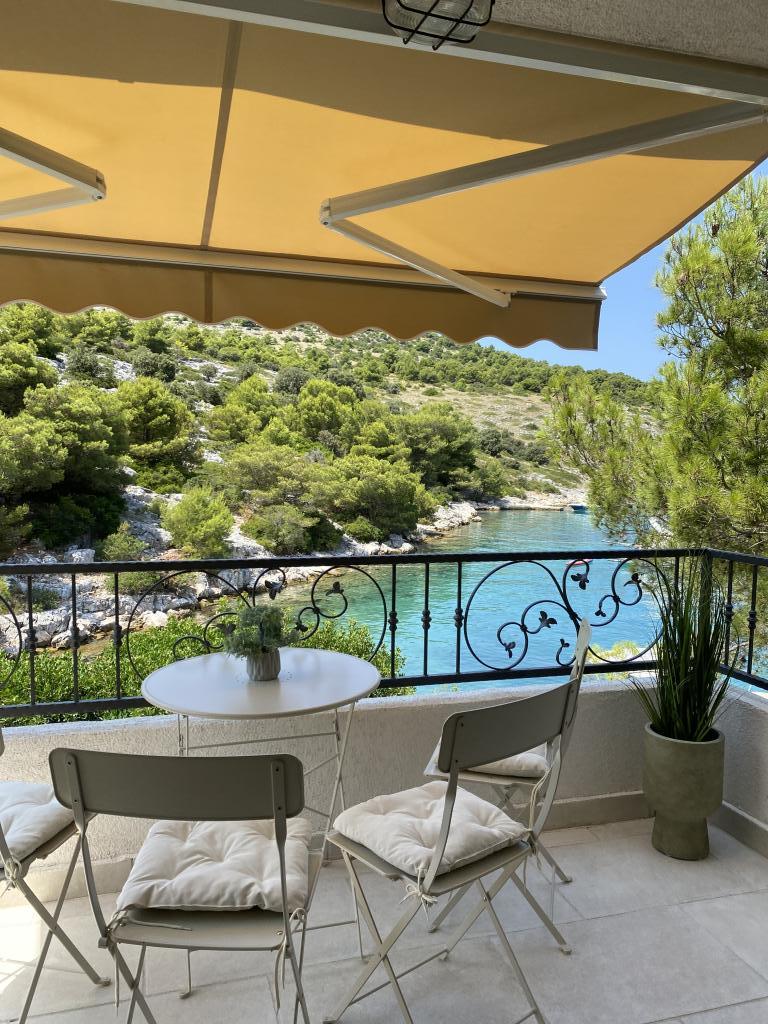 Das neu erbaute Ferienhaus „Levina“ liegt in einer grünen Oase der Ruhe und ist ein idealer Ort zum Entspannen und Genießen. Es ist im Landhausstil eingerichtet und liegt 10 m vom Meer entfernt in der Bucht. Vom Balkon aus bietet sich ein wunderschöner Blick auf das Meer. Die Bucht ist grün und versteckt, Sie werden sich von der Welt abgeschieden und von Ruhe und Schönheit überwältigt fühlen. In der Bucht gibt es nur wenige weitere Häuser. Das Haus verfügt über zwei Schlafzimmer, ein Badezimmer mit Dusche, einen Balkon mit schöner Aussicht und eine Außenterrasse mit Grill. Das Haus ist mit einer mobilen Klimaanlage und einem Ventilator ausgestattet. Wasser ist auf der Insel Gold wert und muss daher sparsam genutzt werden. Das Wasser stammt aus natürlichen Quellen und Regenwasser. Es ist kein Trinkwasser, sondern kann zum Duschen und Waschen verwendet werden. Top-Restaurants, eine ACI Marina und ein Markt befinden sich in der benachbarten Bucht. Sie erreichen sie in etwa 20 Minuten zu Fuß entlang der Felsen oder mit dem Boot. Sie befinden sich buchstäblich am Eingang zum Nationalpark Kornati. Lebensmittel und Trinkwasser kaufen Sie am besten gleich im Abfahrtshafen.