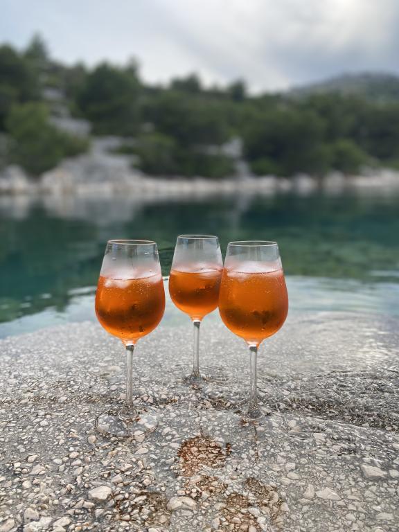 Die Lage und das Haus sind super. Ich kann sagen, es ist ein sehr komfortabler Robinson, da das Haus praktisch neu und sehr schön eingerichtet ist... die Fotos zeigen, was einen erwartet. Als kleine Alternative bietet sich eine 15-minütige Paddelbootfahrt zum Laden in der Marina oder ein 700 m langer Spaziergang entlang der Küste an den Felsen an, und da ist schon ein Weg. Es gibt 6 Häuser in der Bucht, aber dies ist das einzige, das man mieten kann, und wir waren alleine. Man hat sogar Warmwasser in der Dusche und im Paddel... kurz gesagt, alles da, was man braucht, und sehr nette, freundliche Besitzer, die einen mit einem Schnellboot zum Zielort bringen.