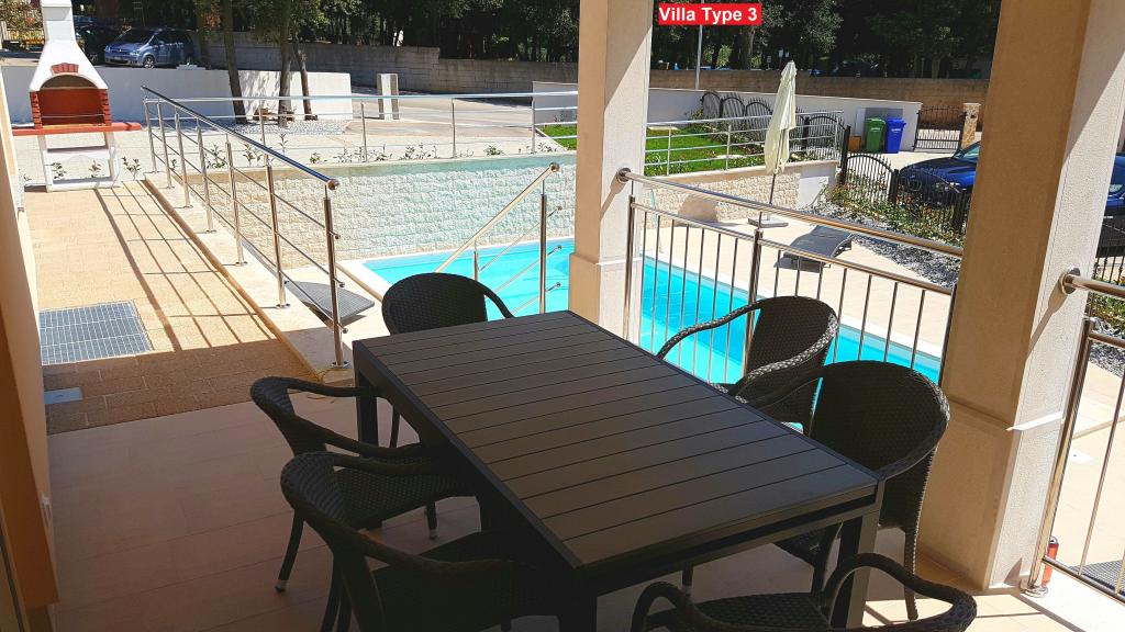 Es gibt 3 Arten von Villen, aus denen Sie wählen können. Alle Villen haben das gleiche Interieur, Sie müssen nur Villa Typ 1, Typ 2 oder Typ 3 wählen! Die Villa bietet Platz für bis zu 8 plus 2 Gäste. Es gibt 4 Schlafzimmer in der Villa, jedes mit eigenem Bad. Entspannen Sie sich im gemütlichen Wohnzimmer und bereiten Sie köstliche Mahlzeiten in der voll ausgestatteten Küche mit Esszimmer zu. Sie können sich an Ihrem privaten Pool entspannen, auf den Liegestühlen liegen und die Schönheit der Sonne genießen. Sie können auch Spezialitäten auf dem Holzkohlegrill für Ihre Freunde und Familie zubereiten. Wenn Sie zum Strand gehen möchten, bringen Sie einfach ein Handtuch mit und Sie sind in wenigen Minuten zu Fuß am Strand, aber es gibt auch tolle Restaurants in Gehweite. Die Villa ist klimatisiert, verfügt über WLAN, einen privaten Parkplatz für 3 Autos und bietet alles für einen angenehmen Urlaub.