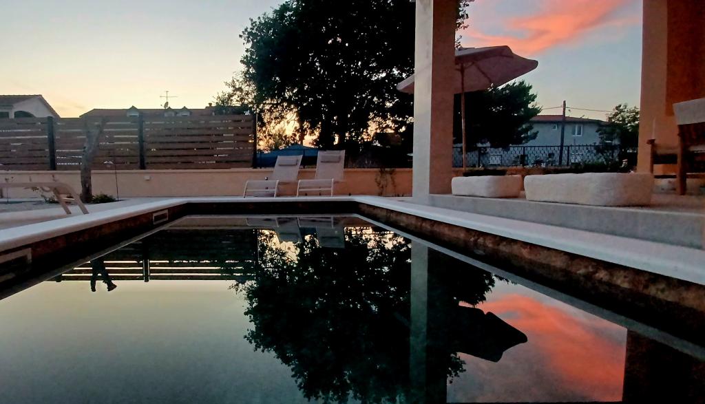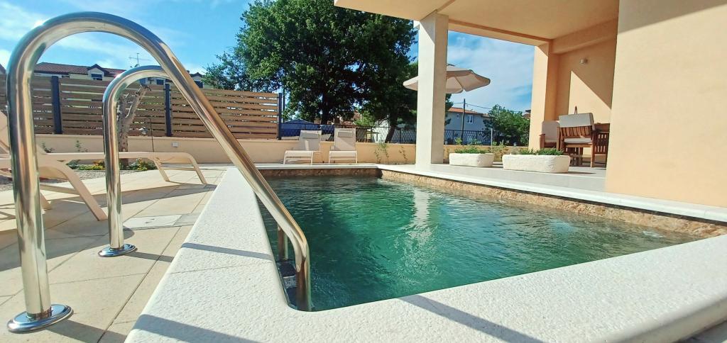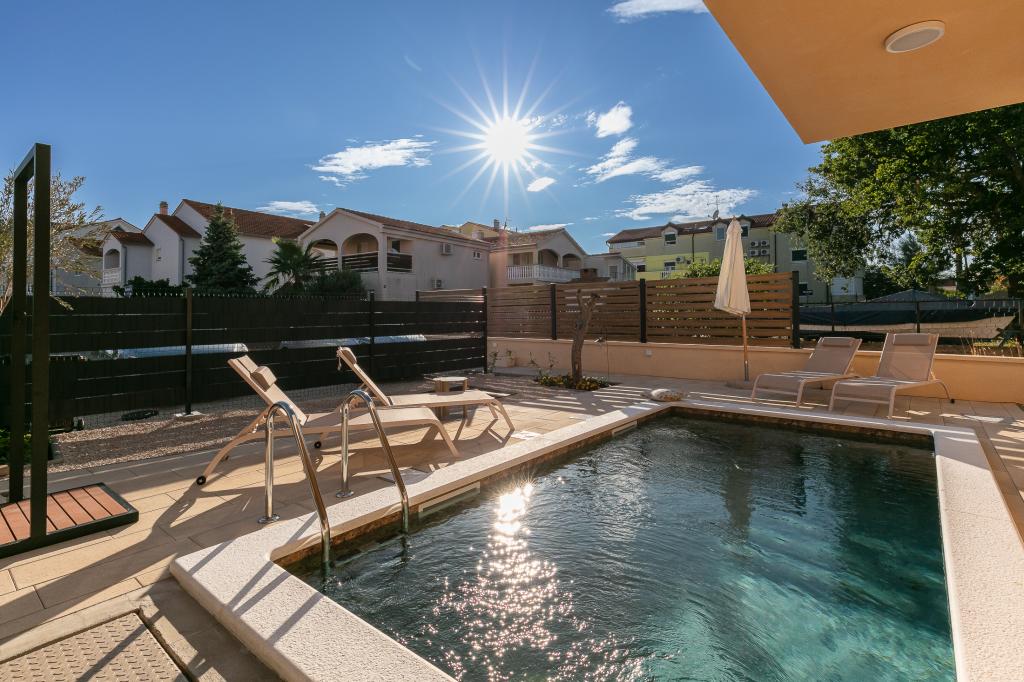 Die modern ausgestattete und charmante Villa mit Pool in einem ruhigen Teil von Biograd na Moru ist ideal für einen erholsamen Urlaub. Das elegant eingerichtete Interieur bietet alles, was Sie für einen komfortablen Aufenthalt benötigen, während der großzügige Garten mit privatem Pool und Liegewiese perfekten Genuss unter der mediterranen Sonne garantiert. Genießen Sie die Kombination aus Komfort, Stil und Meeresnähe in dieser wunderschönen Villa. Wenn Sie eine ruhige, entspannende und komfortable Oase für Ihren Urlaub suchen, ist dies der ideale Ort und das ideale Haus für diese Art von Urlaub.
