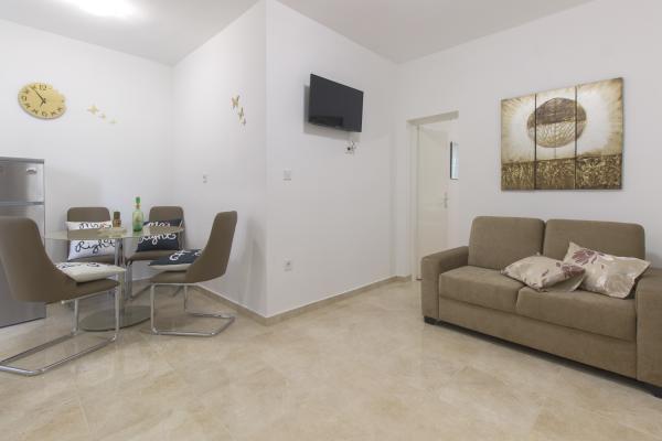 NEUE VILLA MIT GARTEN UND INNENHOF Schöne, moderne Villa in einer natürlichen mediterranen grünen Umgebung. Die Villa verfügt über 60 m2 Wohnfläche, Garten und Hof mit einer Gesamtfläche von 400 m2, gesicherten Parkplatz. Die Villa verfügt über: - 2 Schlafzimmer - 1 Badezimmer - Küche mit Esszimmer - Balkon/Terrasse Voll ausgestattet/Küche, Zimmer und Badezimmer WLAN, Klimaanlage, Parkplatz, Gästeregistrierung - im Preis inbegriffen! GARTEN UND HOF: - Spielplatz für Kinder/ - Hof mit automatischer Türöffnung/-schließung. - Genießen Sie die Früchte von Bio-Gemüse aus unserem Garten.