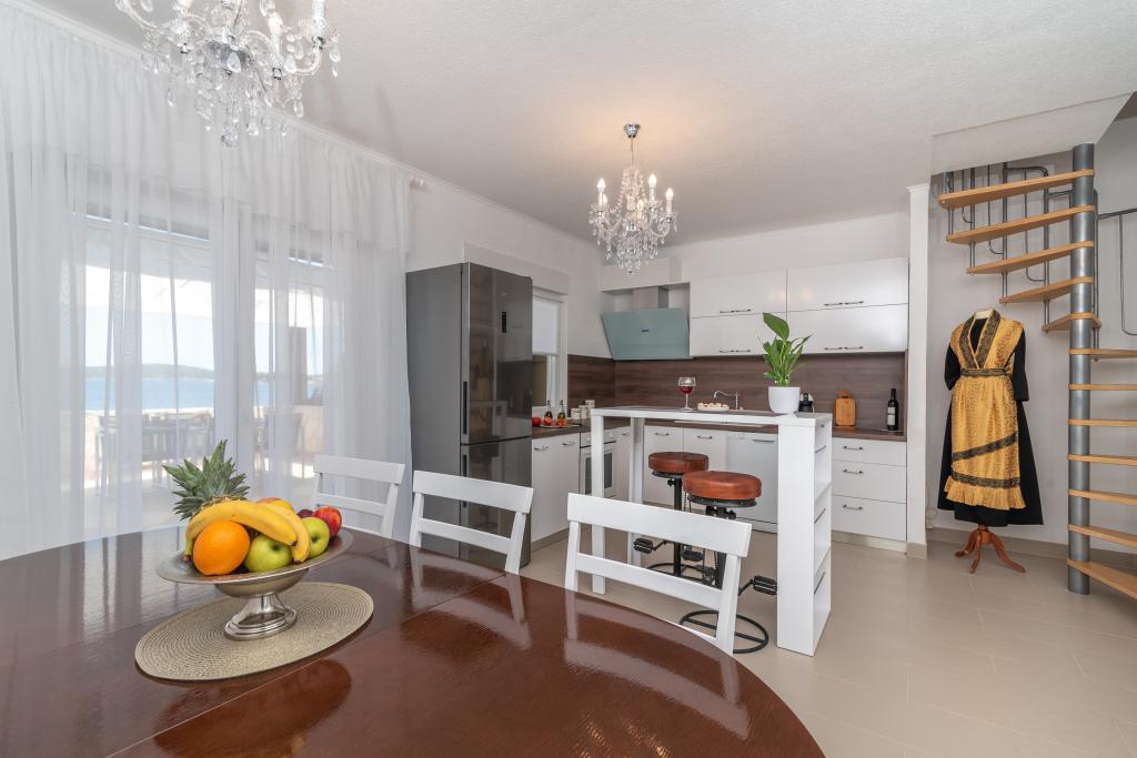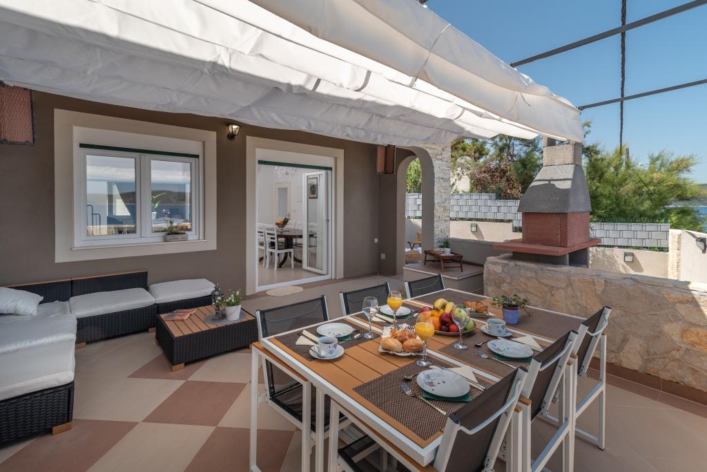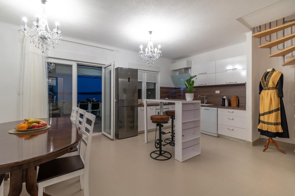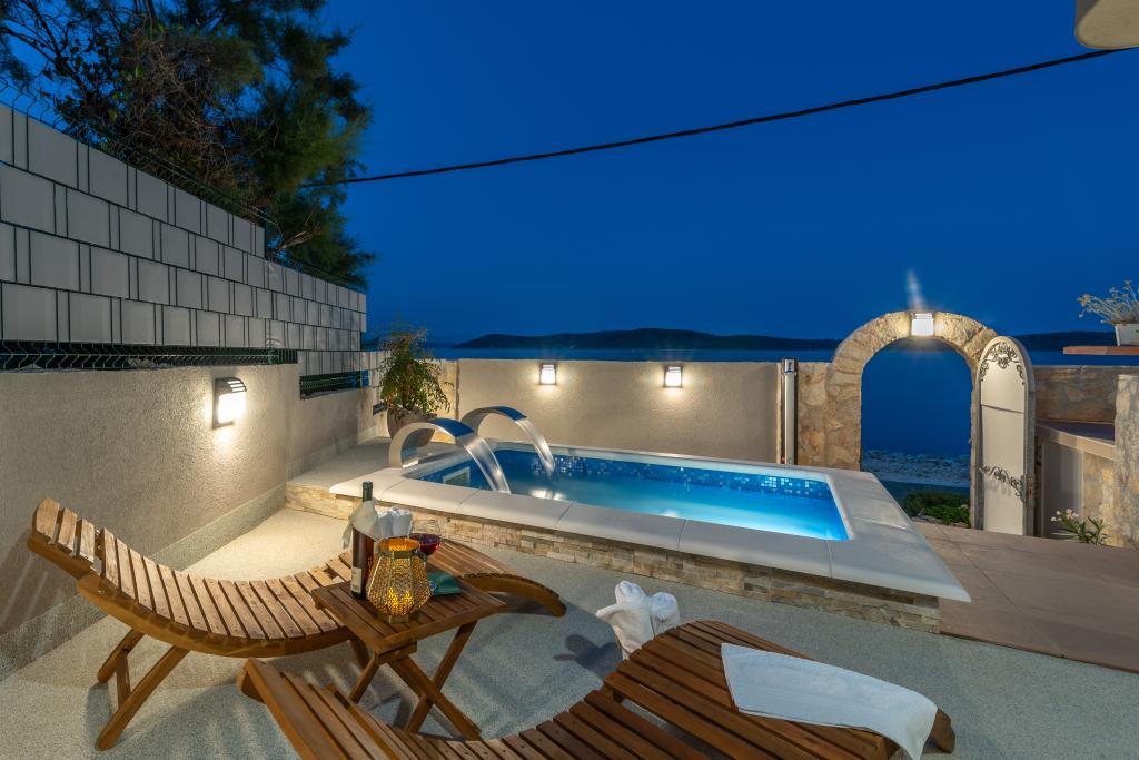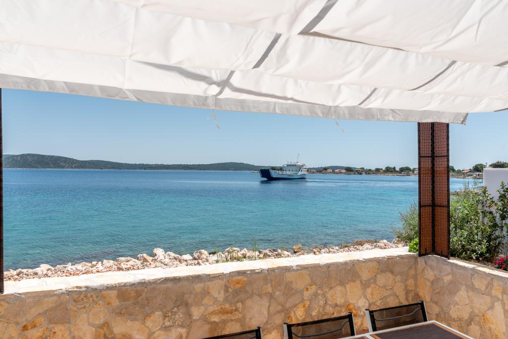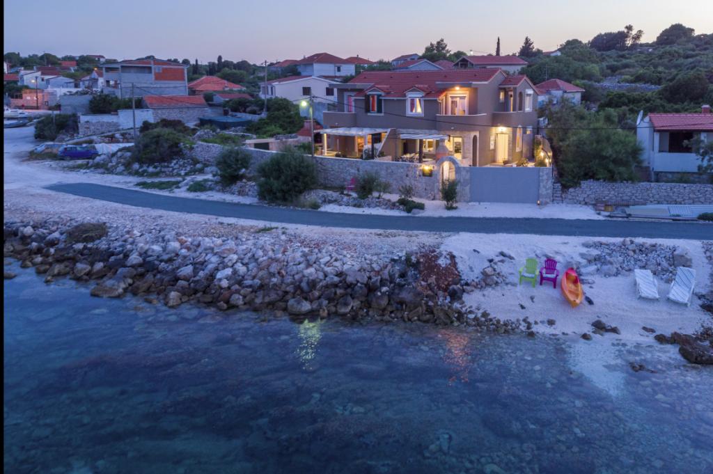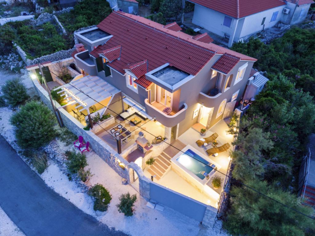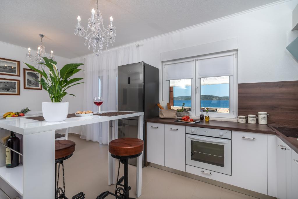 Villa Insula Ventum ist ein Ferienhaus auf der Insel Drvenik Mali in der Nähe von Trogir. Es gibt mehrmals täglich eine Fähre in beide Richtungen zur Insel. Das Haus liegt direkt am Meer, bietet eine voll ausgestattete Küche, 2 Badezimmer, Wohnzimmer und 3 Schlafzimmer mit Queensize-Betten (180x200cm). Den Gästen steht eine große Terrasse mit Grill, Essgruppe und Sitzecke zur Verfügung. Im Hof gibt es einen kleinen Pool mit Blick aufs Meer.