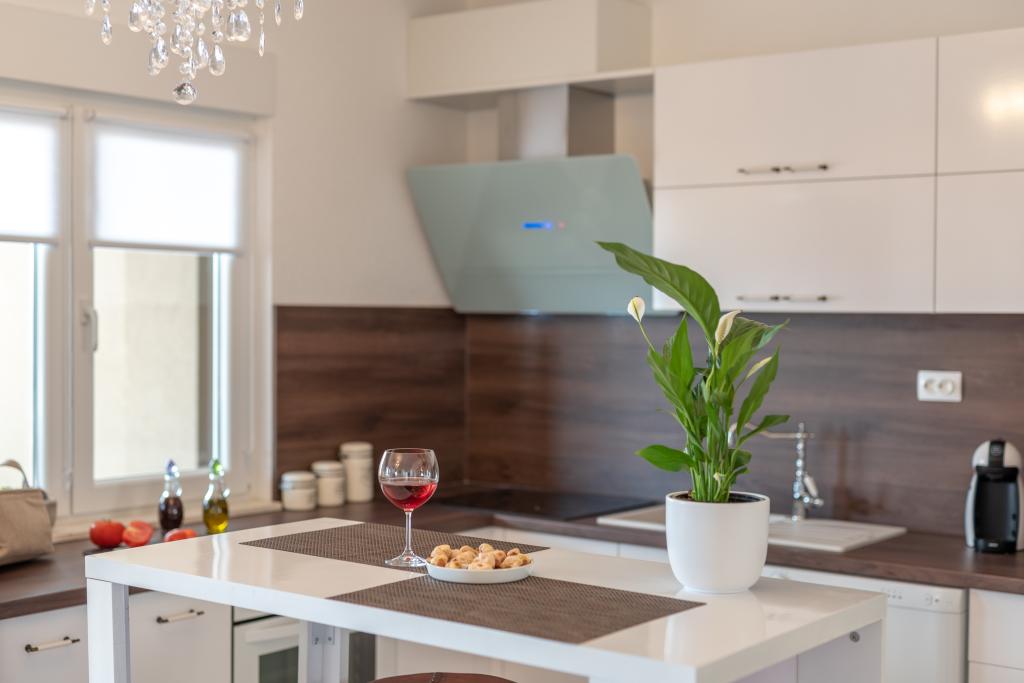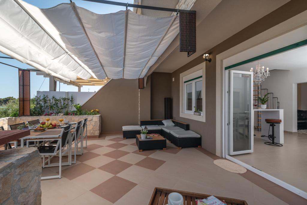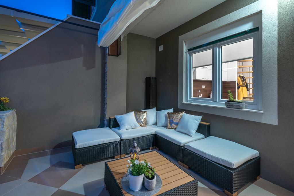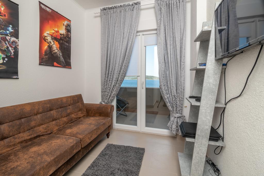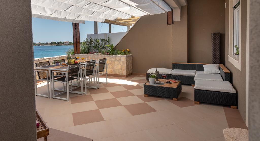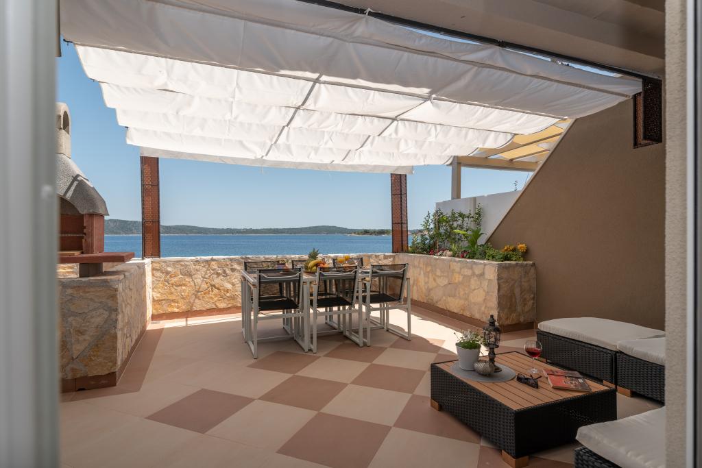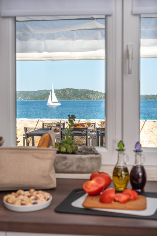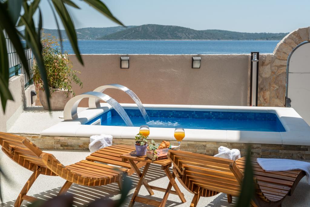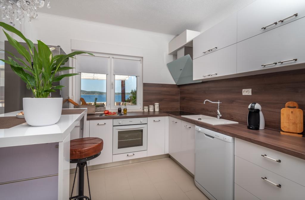 Villa Insula Ventum ist ein Ferienhaus auf der Insel Drvenik Mali in der Nähe von Trogir. Es gibt mehrmals täglich eine Fähre in beide Richtungen zur Insel. Das Haus liegt direkt am Meer, bietet eine voll ausgestattete Küche, 2 Badezimmer, Wohnzimmer und 3 Schlafzimmer mit Queensize-Betten (180x200cm). Den Gästen steht eine große Terrasse mit Grill, Essgruppe und Sitzecke zur Verfügung. Im Hof gibt es einen kleinen Pool mit Blick aufs Meer.