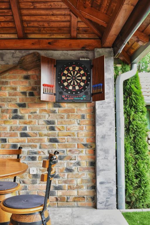 Villa Edl ist ein elegantes, luxuriös eingerichtetes Ferienhaus der 5-Sterne-Kategorie. Es befindet sich in Aljmaš (25 km von der Stadt Osijek entfernt). Die Anlage verfügt über ein beheiztes Hallenbad 5x4 m, eine Wellnessoase mit Infrarotsauna, eine voll ausgestattete Küche, ein Wohnzimmer mit Kamin, eine geschlossene Terrasse mit Esstisch, einen Raum zum Waschen und Trocknen von Kleidung, zwei Schlafzimmer mit Doppelbetten, und in jedem Zimmer gibt es ein zusätzliches Bett (4+2), zwei Badezimmer. In den Sommermonaten können sich die Gäste auf der Sonnenliege vergnügen. Die Anlage verfügt über einen angelegten und umzäunten Garten, kostenlose Parkplätze, ein Parkplatz ist überdacht. In der Hütte Rošilj haben die Gäste Zugang zu einem Holz-/Kohlegrill und einem Gasgrill. Für die jüngsten Gäste verfügt die Anlage über einen Kinderspielplatz mit einem Rutsche und Schaukeln, Darts, Badminton usw. Bettwäsche, Handtücher, Bademäntel, Hausschuhe, Kosmetika für die persönliche Hygiene stehen den Gästen zur Verfügung. Haustierfreundlich Kapazität: 6 Personen Selbst-Check-in WI-FI