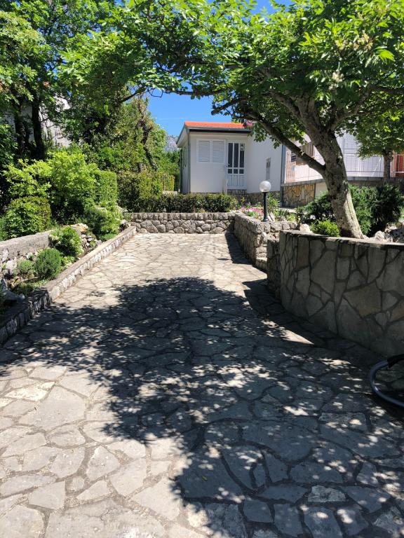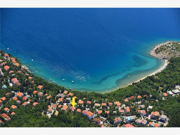 Komplett eingerichtetes Ferienhaus von 50 m2 mit einem Garten von 240 m2, gesicherter Parkplatz für 2 Fahrzeuge, nur 70 m vom natürlichen Kiesstrand mit Blick auf die Insel Krk entfernt. Es befindet sich in einer ruhigen Umgebung, die für perfekte Erholung und Entspannung geeignet ist. Es besteht aus einem Schlafzimmer, einem geräumigen Esszimmer und einer separaten Küche sowie einem großen Wohnzimmer und zwei Terrassen, die von viel Grün umgeben sind.