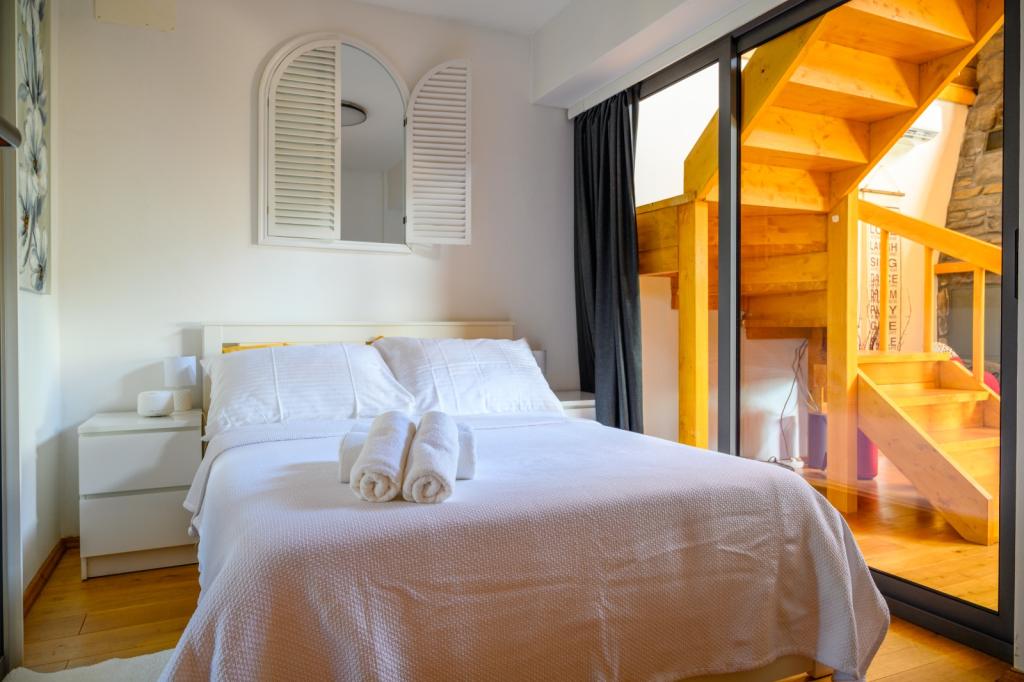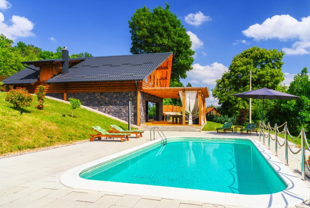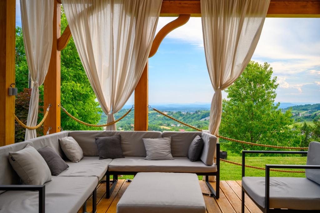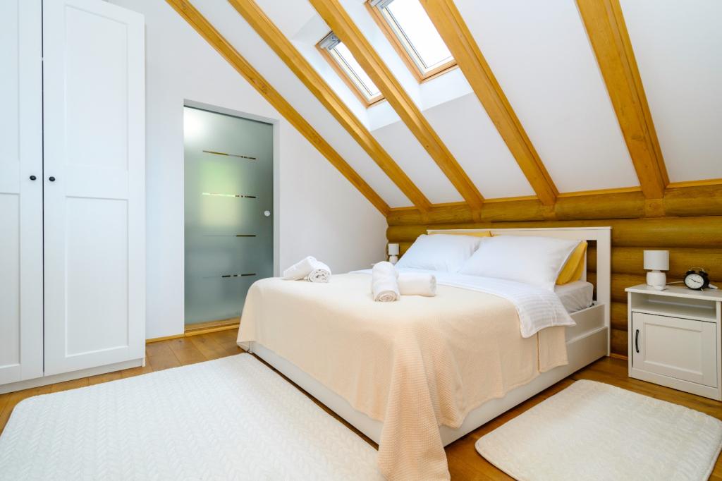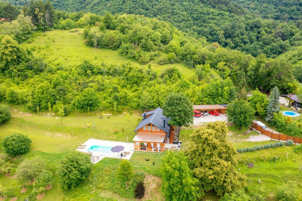 Nicht weit von Zagreb, nur 44 km entfernt und 350 Meter über dem Meeresspiegel, am Fuße des Japetić-Gebirges, befindet sich das Holzhaus Wellspring in Sveta Jana (Gorica Svetojanska). Ein Teil des Grundstücks (von insgesamt 2.700 m2) gehört zum Schutzgebiet des Naturparks Žumberak und ist daher ein besonders inspirierender Ort für den Urlaub. Im Dorf selbst gibt es mehrere natürliche Trinkwasserquellen und das erste größere Dorf Jastrebarski ist 9 km entfernt. Das Holzhaus Wellspring besteht aus zwei Etagen mit kostenlosem WLAN. Auf der unteren Etage befindet sich ein offener Wohnbereich mit Kamin, ein gut ausgestattetes Esszimmer und eine Küche, ein Schlafzimmer, ein Wellnessbereich mit finnischer Sauna und Whirlpool, eine ebenerdige Dusche und ein WC. Im Obergeschoss befinden sich zwei Schlafzimmer mit eigenen Bädern und Platz auf der Galerie zum Ausruhen/Lesen. Neben dem Kamin gab es auch eine Zentralheizung für die kalten Wintermonate, sowie eine Fußbodenheizung im Wellnessbereich. Die überdachte Terrasse mit Blick nach Süden ist 40 m2 groß und verfügt über einen beheizten Swimmingpool mit Sonnenliege, Dusche und Sonnenliegen.