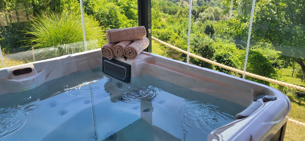 Die Bergvilla Carin liegt in einem ruhigen Teil des Naturparks Samoborsko gorje. Dank ihrer beneidenswerten Hanglage bietet die Villa einen herrlichen Panoramablick über die gesamte Tiefebene im Umkreis von 100 km. Die Villa verfügt über 120 m² Wohnfläche und bietet Platz für bis zu 8 Gäste in 4 elegant eingerichteten Schlafzimmern mit Doppelbetten, jeweils mit Fernseher und schöner Aussicht. Kostenloses WLAN, eine Terrasse mit Grill und Essbereich, ein Whirlpool für 5 Personen, ein Kaminofen, Heizkörper und eine Klimaanlage sorgen für angenehme Temperaturen, sodass die Villa sowohl im Sommer als auch im Winter komfortabel ist. Zur Unterkunft gehören private Parkplätze für vier Fahrzeuge und ein kinder- und familienfreundlicher Außenbereich. Dank ihrer erhöhten Lage bietet die verglaste Terrasse mit Whirlpool, die zu jeder Jahreszeit zum Verweilen einlädt, einen Panoramablick auf Zagreb, Jastrebarsko, Karlovac, das Naturschutzgebiet Crna Mlaka und Petrova gora. Die Umgebung bietet zahlreiche Möglichkeiten für einen aktiven und erholsamen Urlaub.