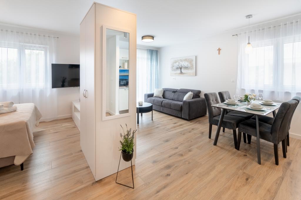 Mehr lesenDer Preis gilt pro Nacht für die gesamte Anlage. Bitte zahlen Sie bei der Buchung eine Anzahlung von 30 % im Voraus auf das Bankkonto und den Rest des Gesamtpreises bei Ankunft im Apartment. Für die Monate Mai, Juni, September und Oktober beträgt die Mindestnächteanzahl 5 Nächte. Für die Monate Juli und August beträgt die Mindestnächtezahl 7 Nächte. Ab 14 Nächten 10 % Rabatt auf die aufgeführten Listenpreise. Der Check-in ist ab 15:00 Uhr und der Check-out bis 10:00 Uhr möglich. Bitte senden Sie alle Anfragen schriftlich (durch Senden von Anfragen über ein Webformular, per E-Mail oder Nachrichten über die WhatsApp- oder Viber-Anwendung).